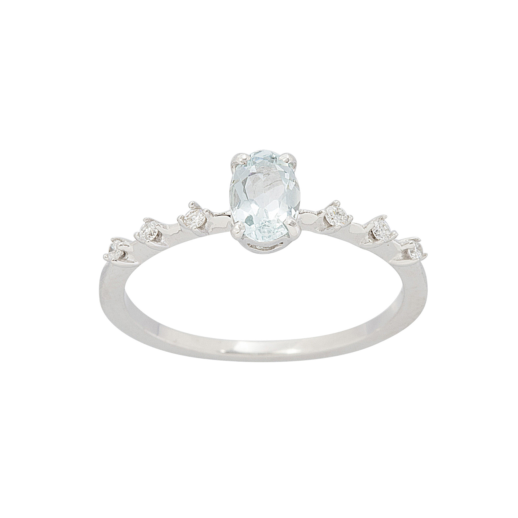 Anel de ouro branco com 0,33ct de água-marinha, 0,10ct de brilhantes e 1,5g. Medida 14.