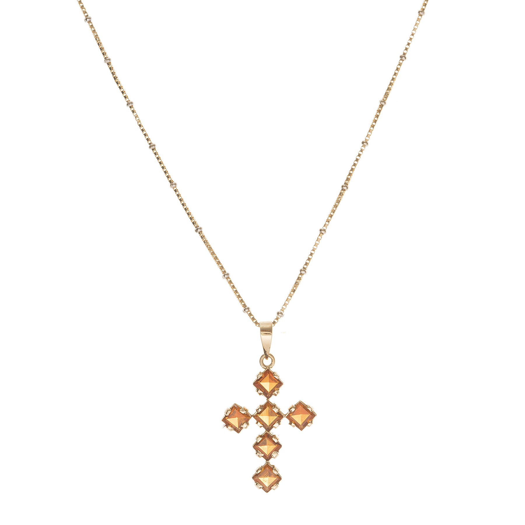 Corrente com pingente de ouro amarelo, citrinos e 5,6g. Medida da corrente 45cm. Medida do pingente 1,8x3,2cm.