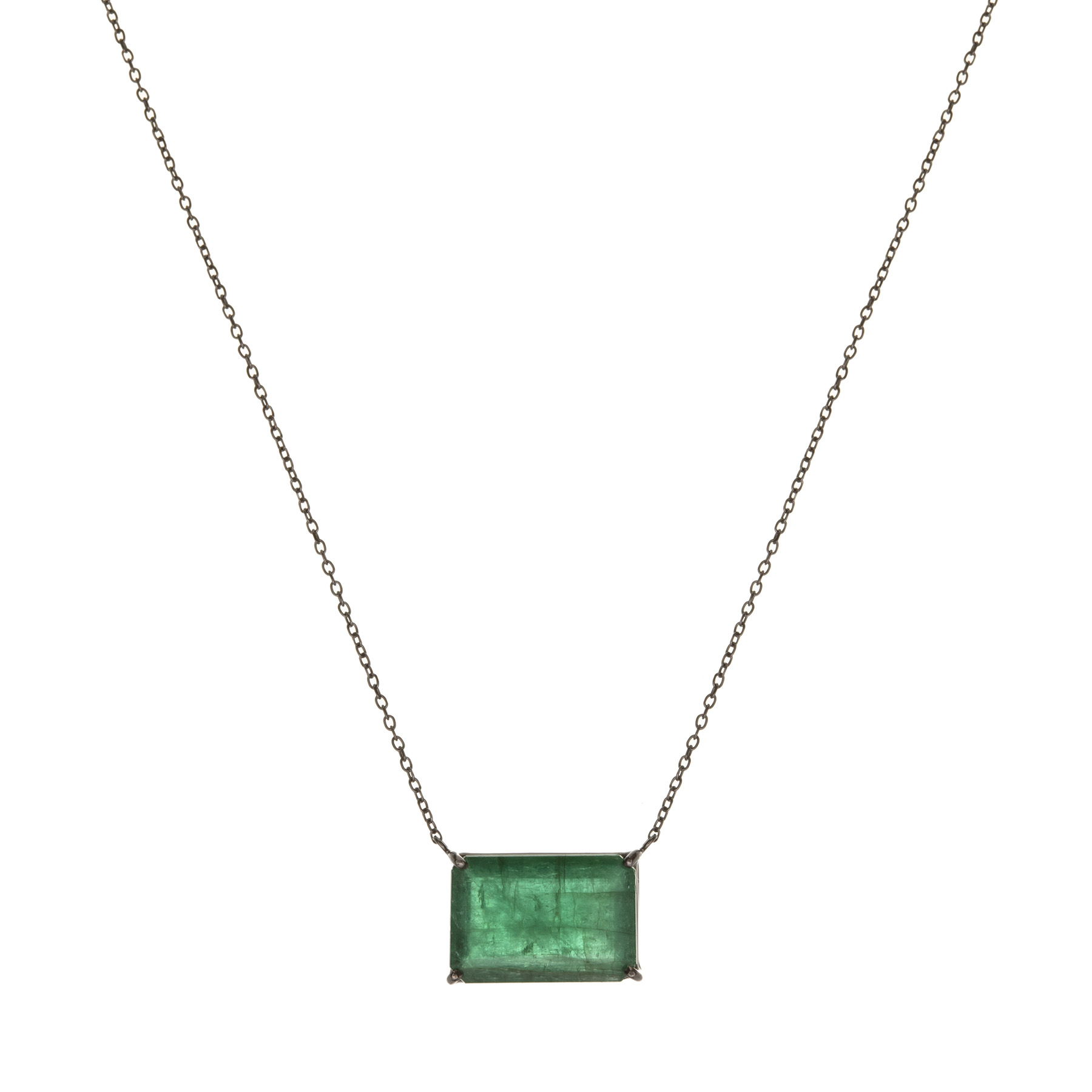 Corrente com pingente de ouro branco, ródio negro, 6,10ct de esmeralda e 3,7g. Medida da corrente 50cm. Medida do pingente 1x1,5cm.