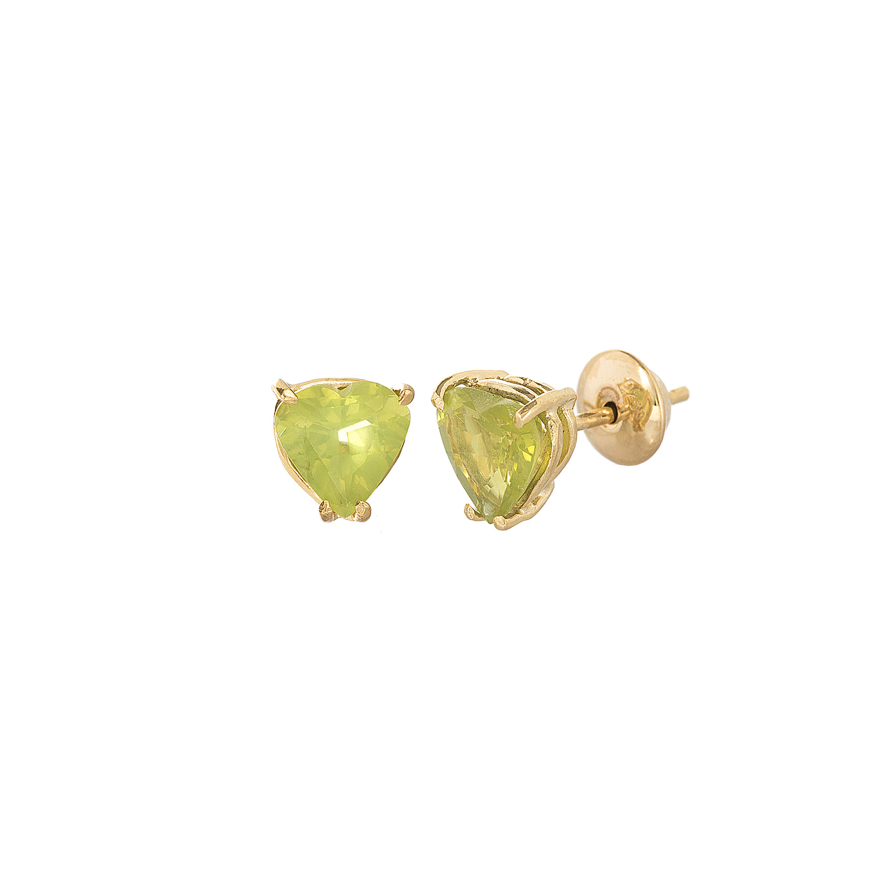 Brinco de ouro amarelo com 2,10ct de peridotos. Medida 0,7cm.
