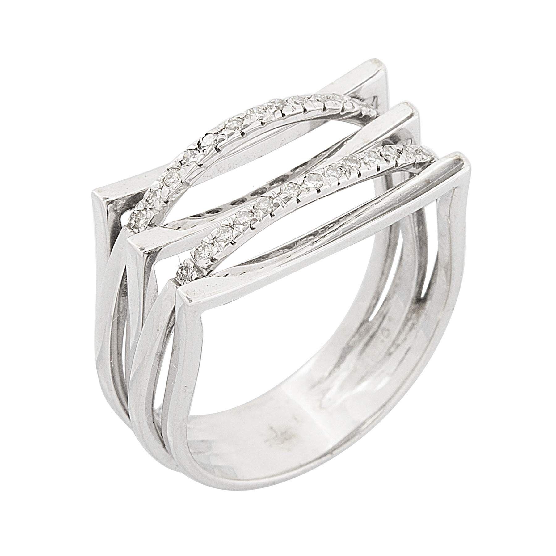 Anel de ouro branco com 0,20ct de brilhantes e 8,1g. Medida 20.