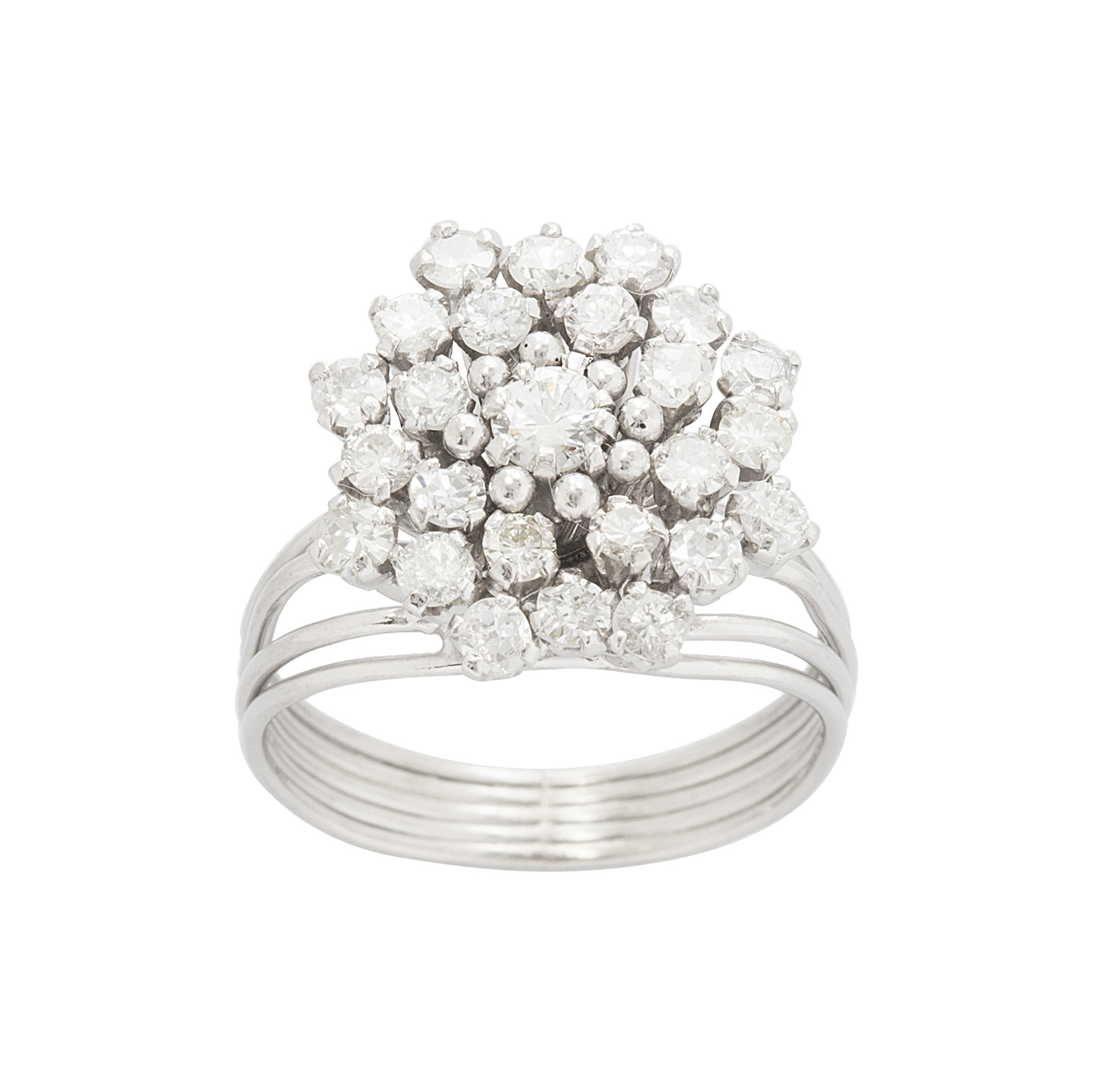 Anel chuveiro de platina com 1,15ct de brilhantes e 6,1g. Medida 14.