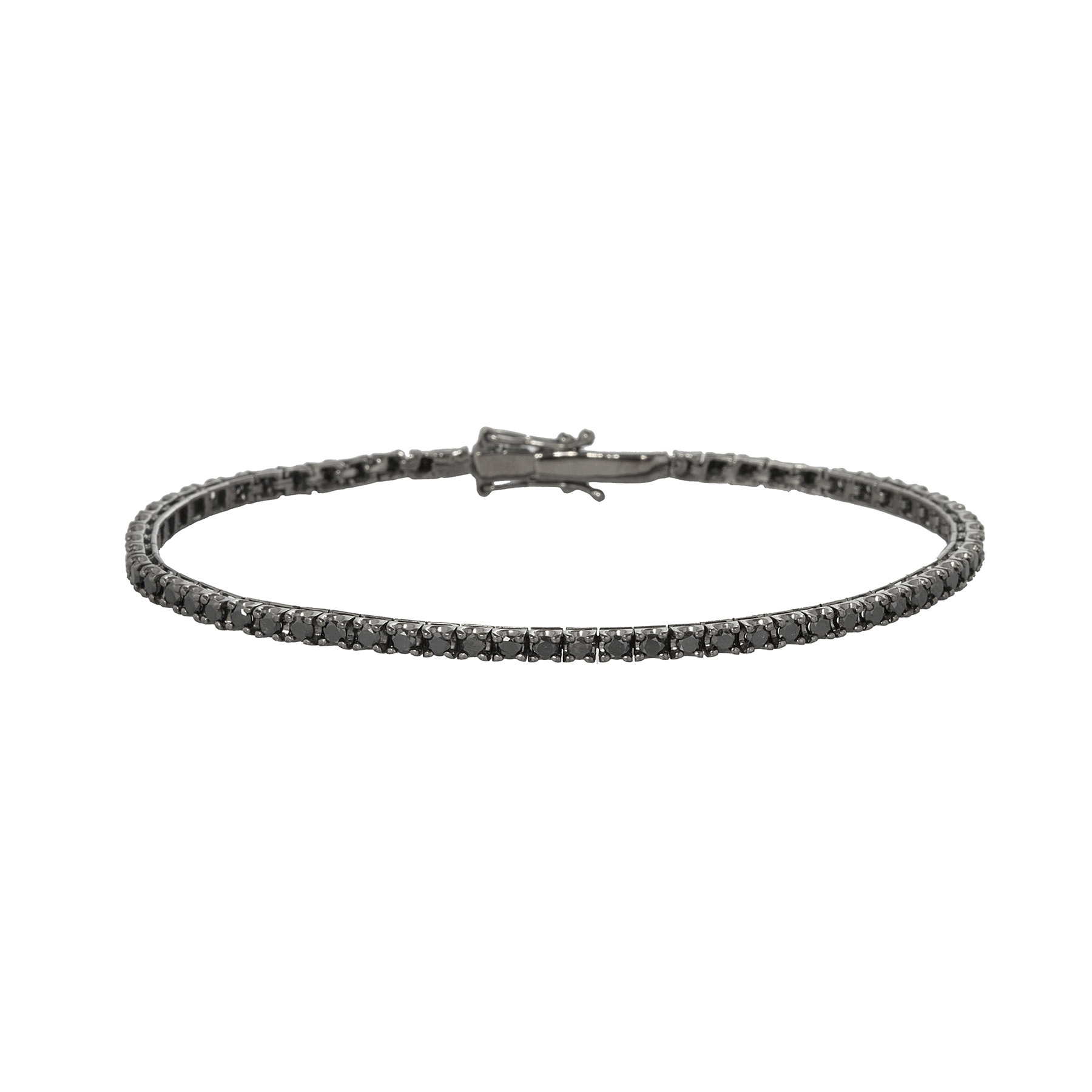 Pulseira riviera de ouro branco com 2,40ct de brilhantes negros e 7,2g. Medida 17,5cm.