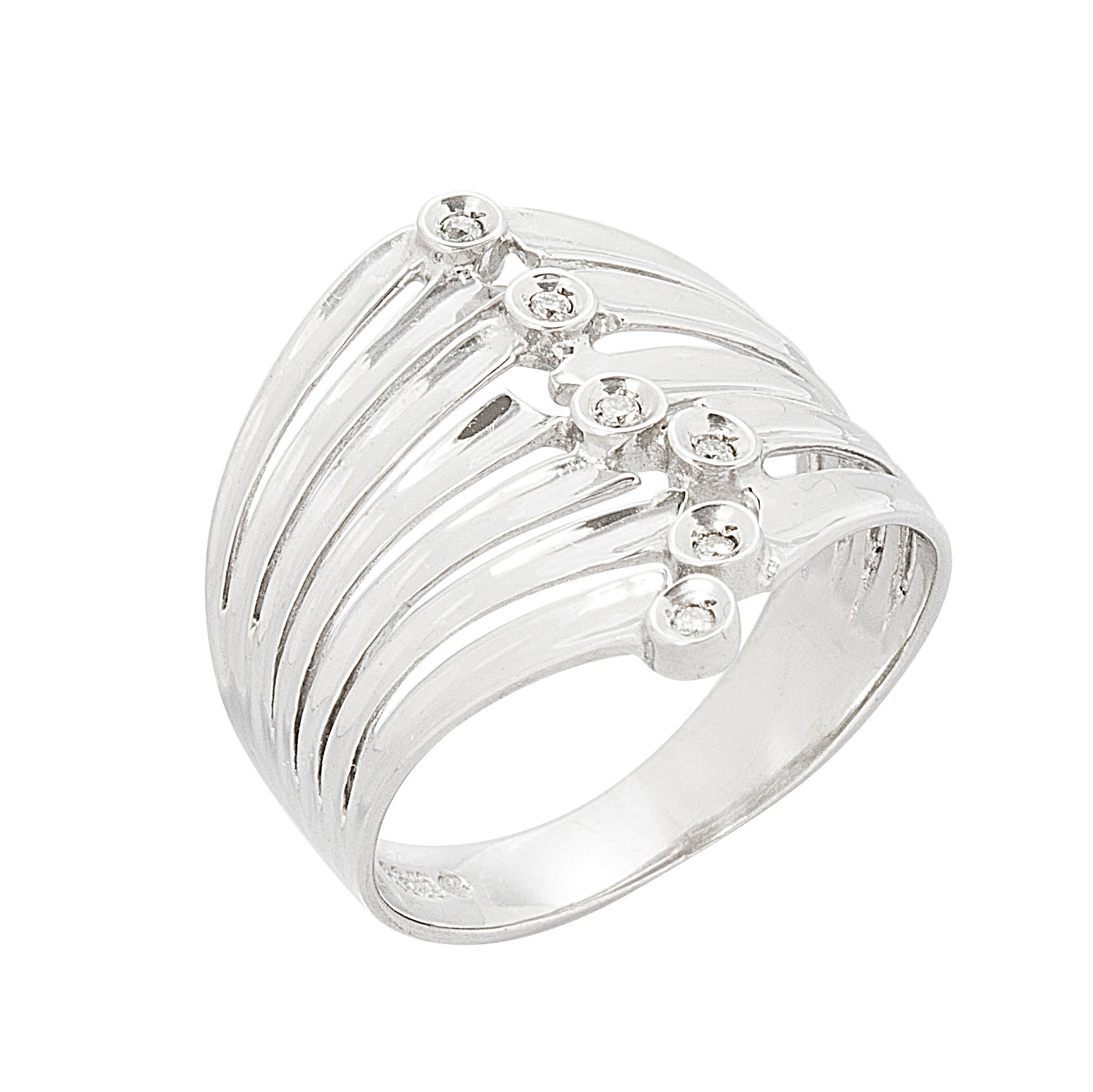 Anel de ouro branco com 0,08ct de brilhantes e 4,5g. Medida 16.