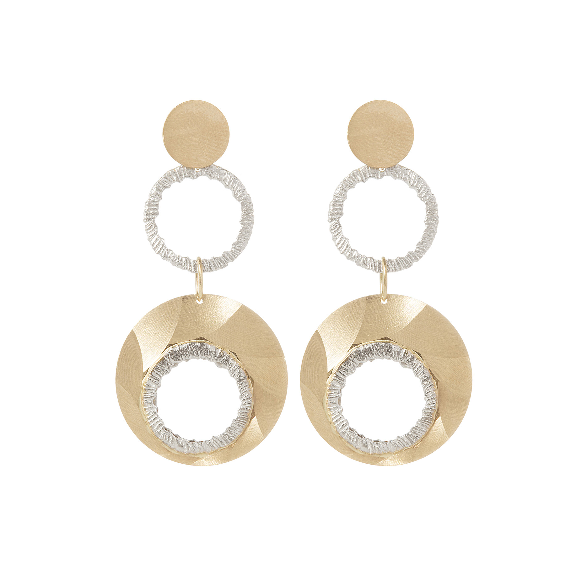 Brinco de ouro amarelo e branco com 6,2g. Medida 4,5cm.