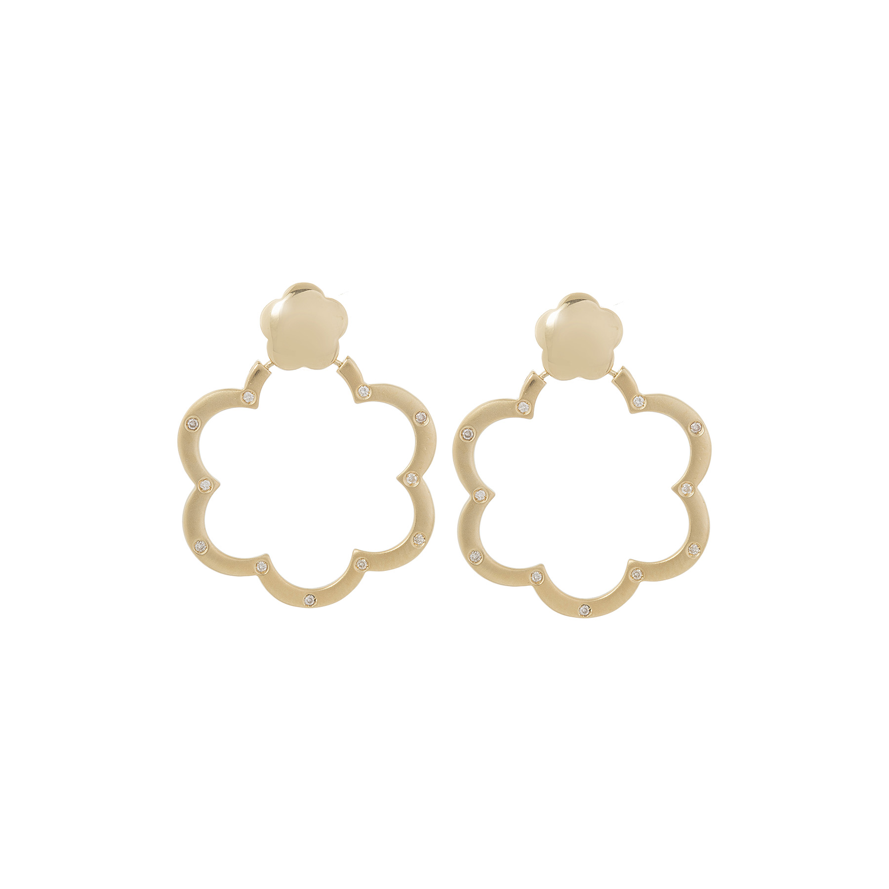 Brinco de ouro amarelo com 0,15ct de brilhantes e 8,3g. Medida 3,5cm.