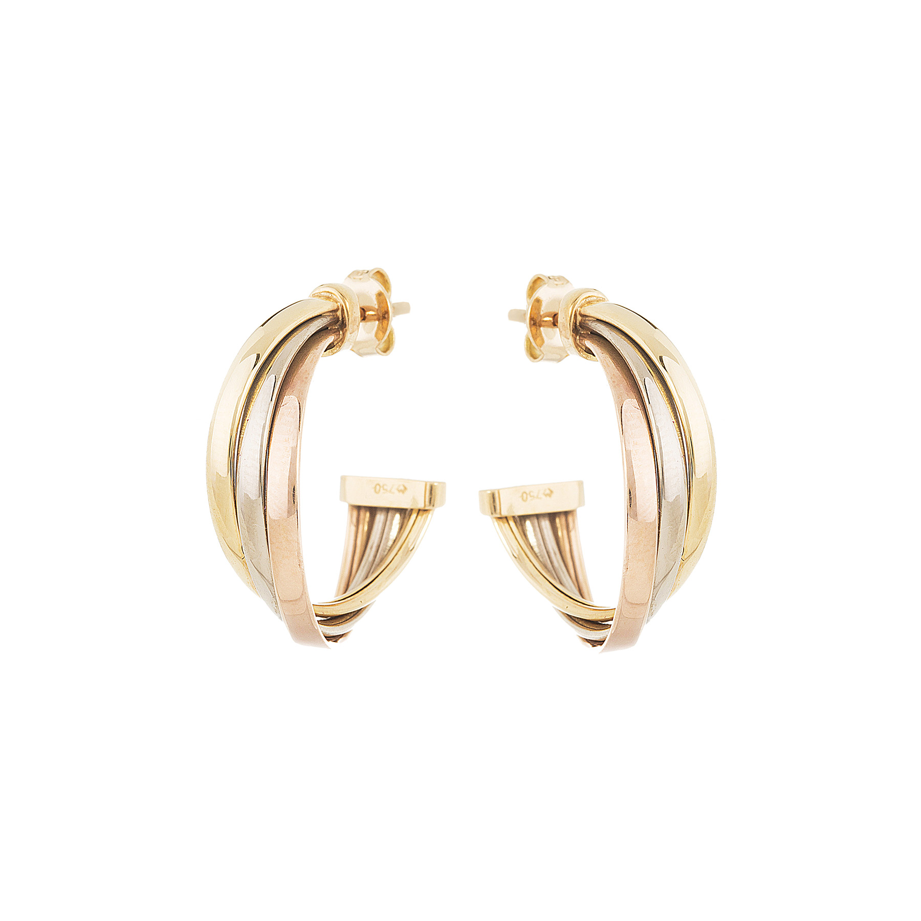 Brinco de ouro amarelo, branco e rosé com 6,6g. Medida 2cm.