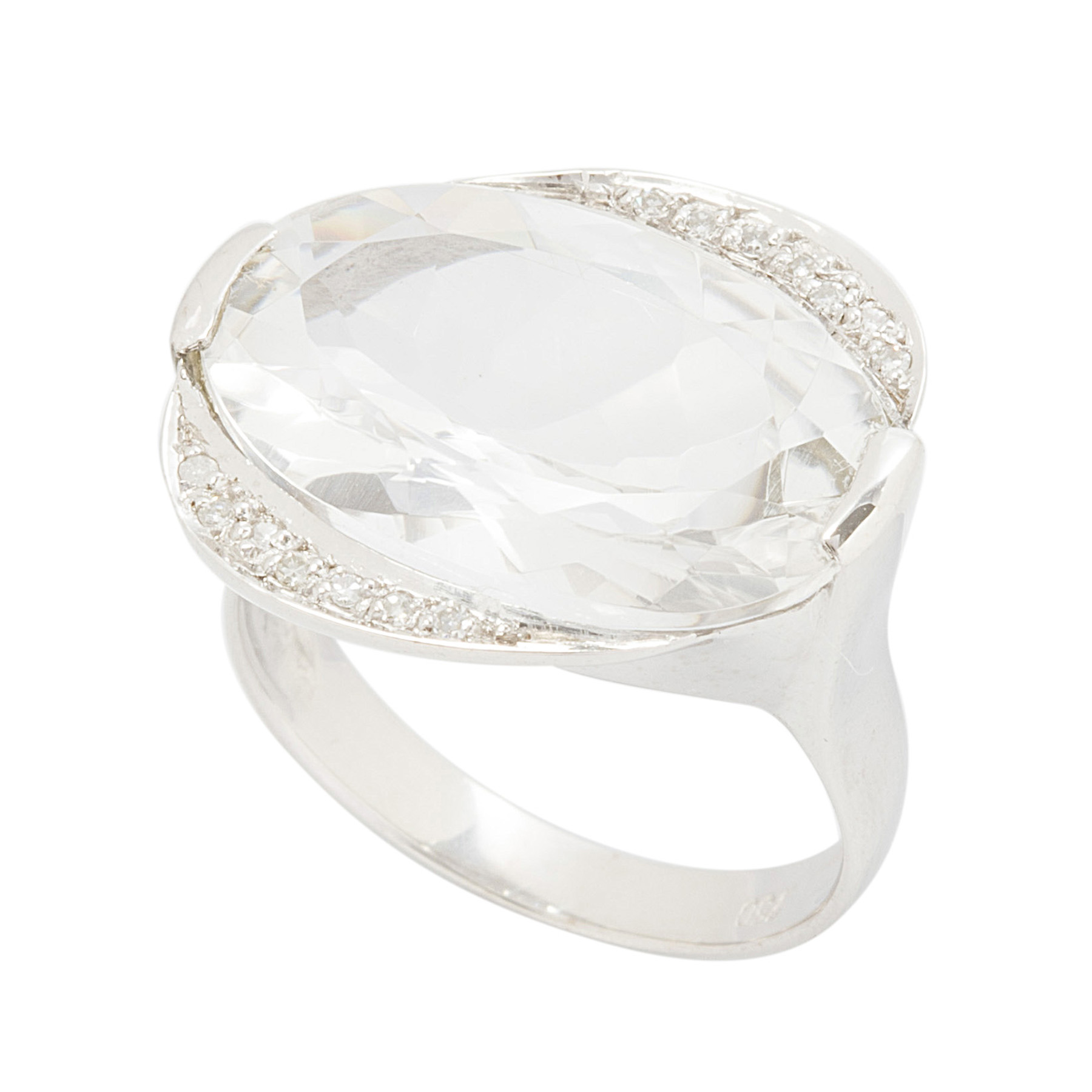 Anel de ouro branco com cristal, 0,07ct de brilhantes e 6,6g. Medida 14.