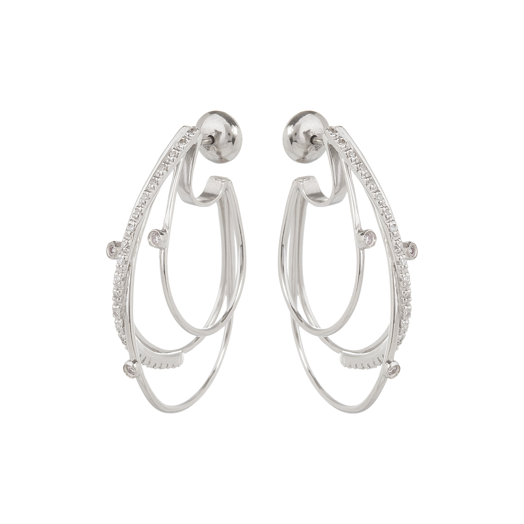 Brinco de ouro branco com 0,20ct de brilhantes e 6,8g. Medida 3,5cm.