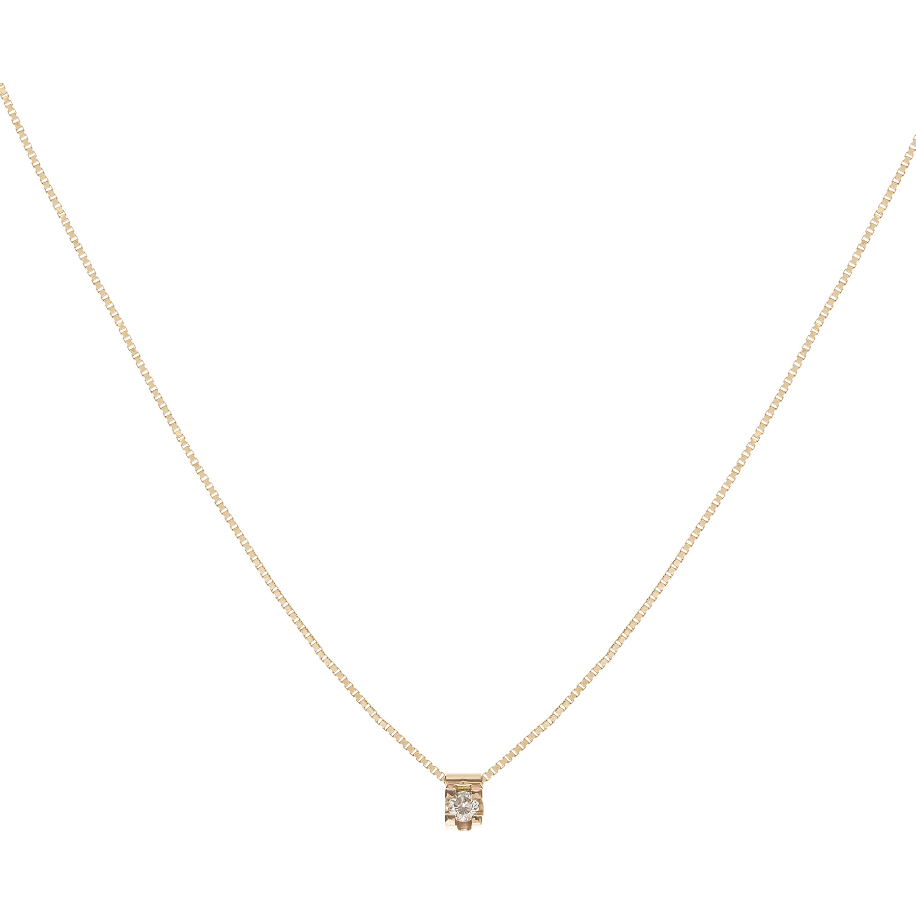 Corrente com pingente de ouro amarelo, 0,15ct de brilhante e 4,3g. Medida da corrente 40cm. Medida do pingente 1cm.