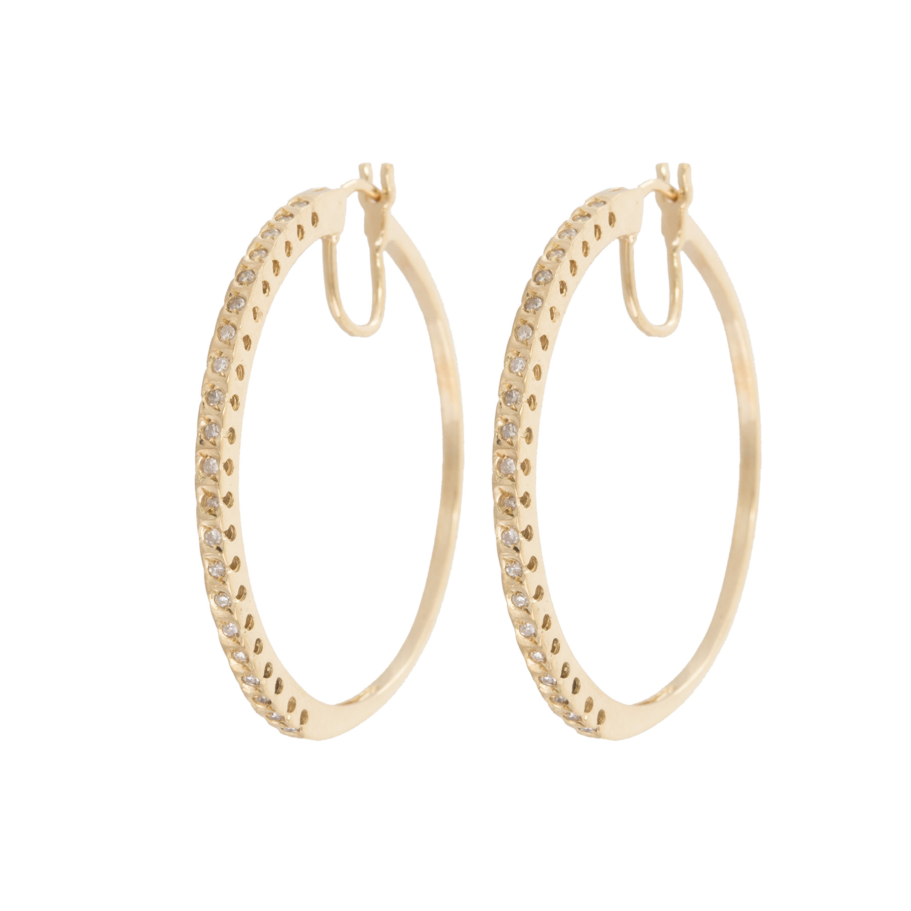Brinco de ouro amarelo com 0,22ct de brilhantes e 8,1g. Medida 3,5cm.