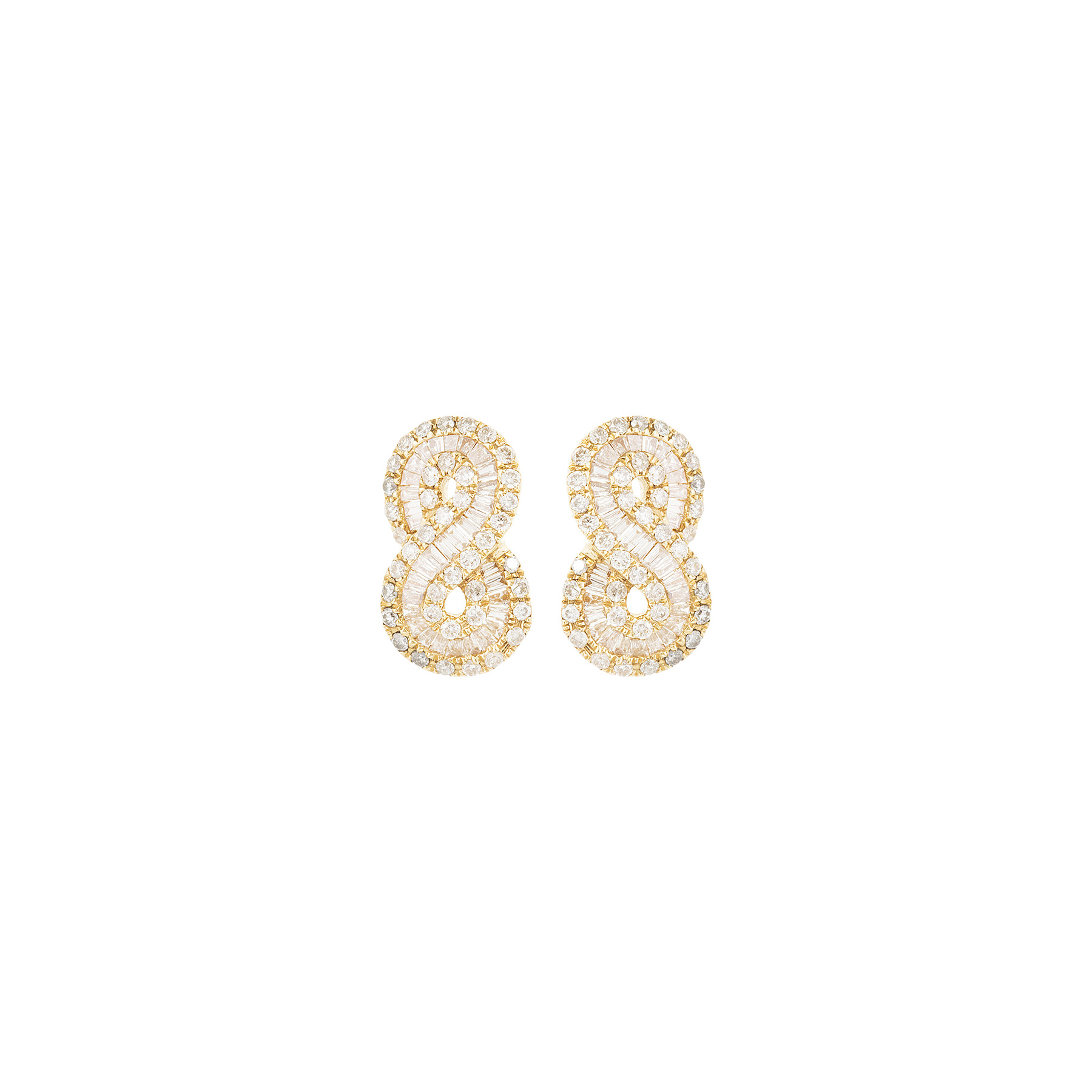 Brinco de ouro amarelo com 0,76ct de diamantes (sendo 0,30ct de lapidação brilhante/0,46ct de lapidação baguete) e 3,9g. Medida 1,2cm.