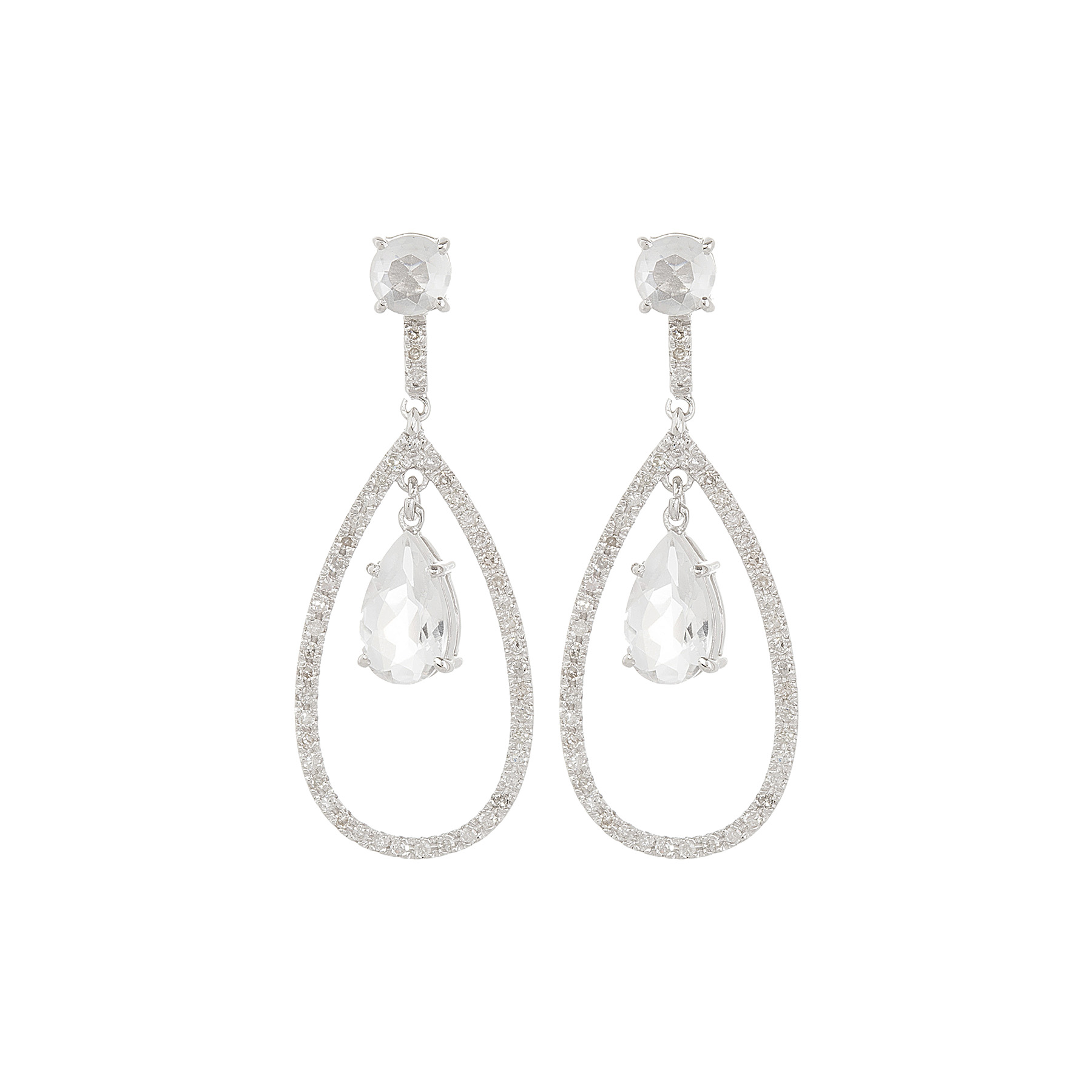 Brinco de ouro branco com 3,12ct de quartzos, 0,40ct de brilhantes e 6,7g. Assinado VIVARA. Medida 4cm.
