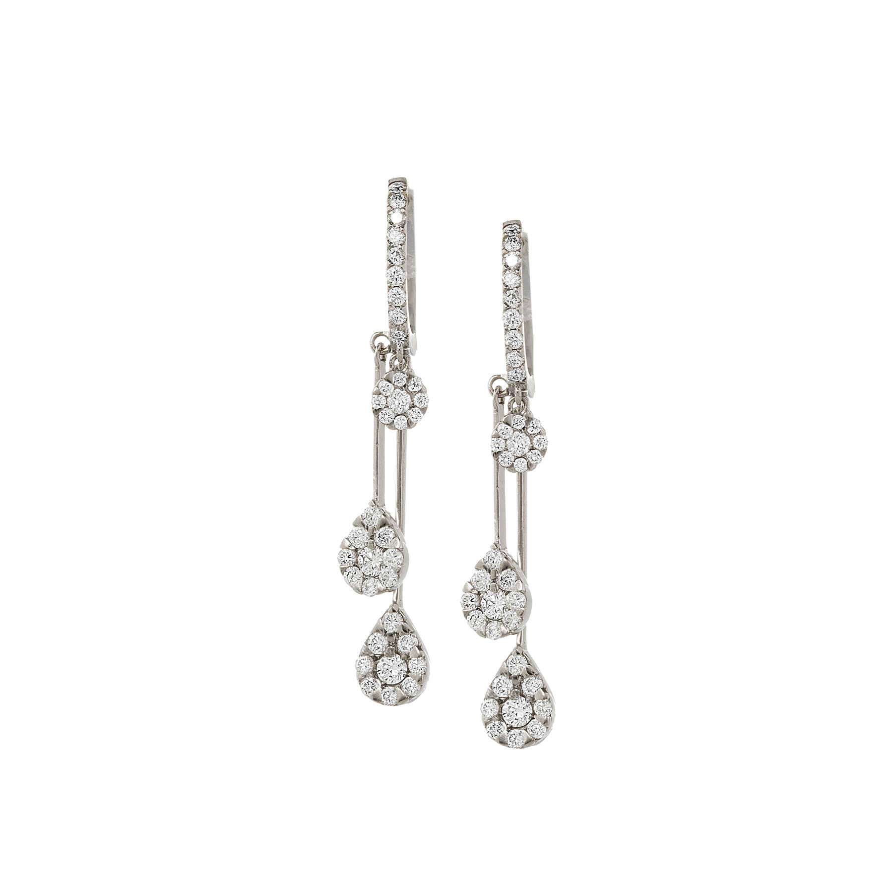 Brinco de ouro branco com 1,00ct de brilhantes e 3,6g. Medida 3,5cm.