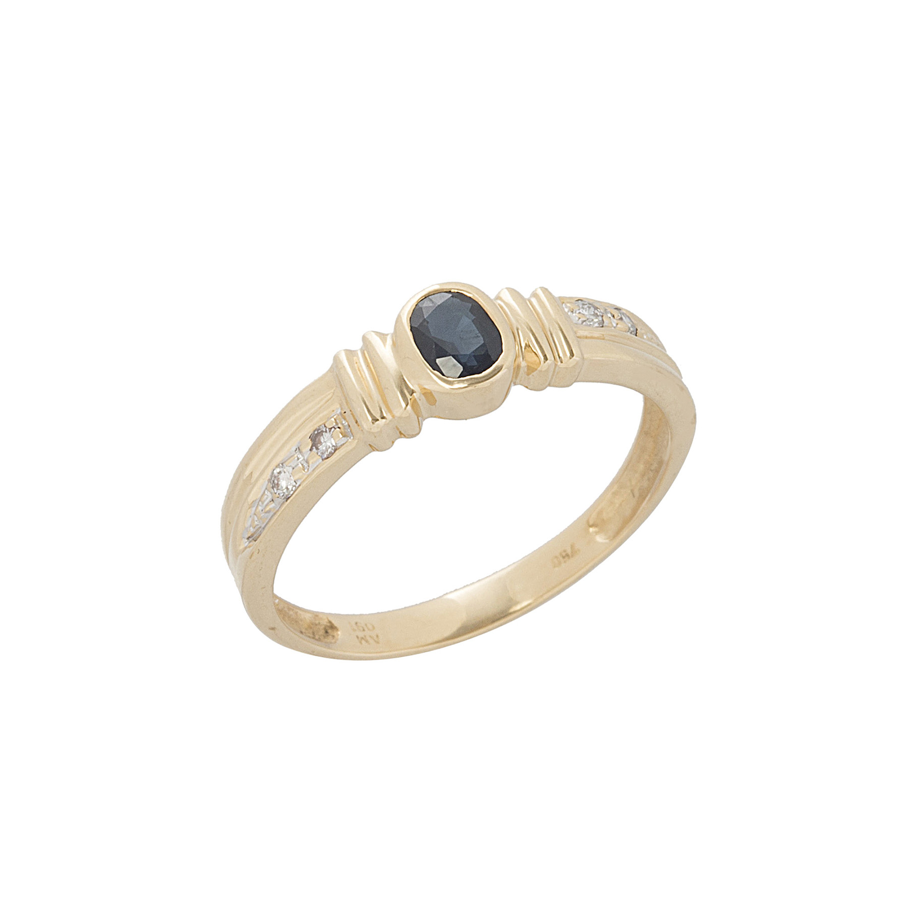 Anel de ouro amarelo com safira, 0,03ct de brilhantes e 2,9g. Medida 19.