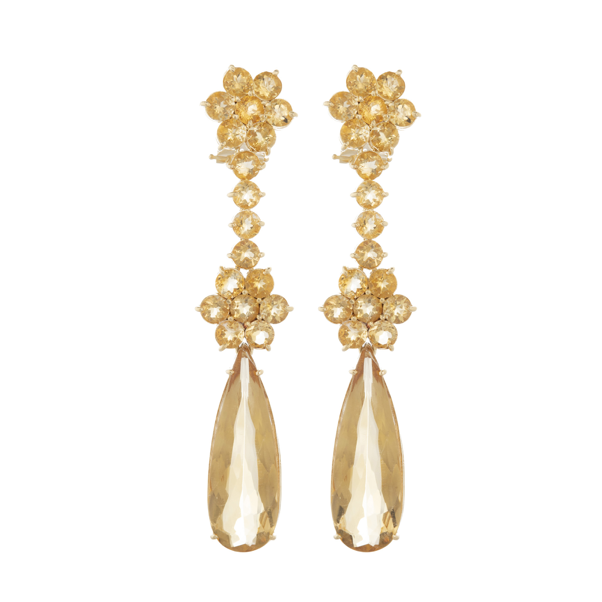 Brinco de ouro amarelo com citrinos e 20,5g. Medida 7cm.