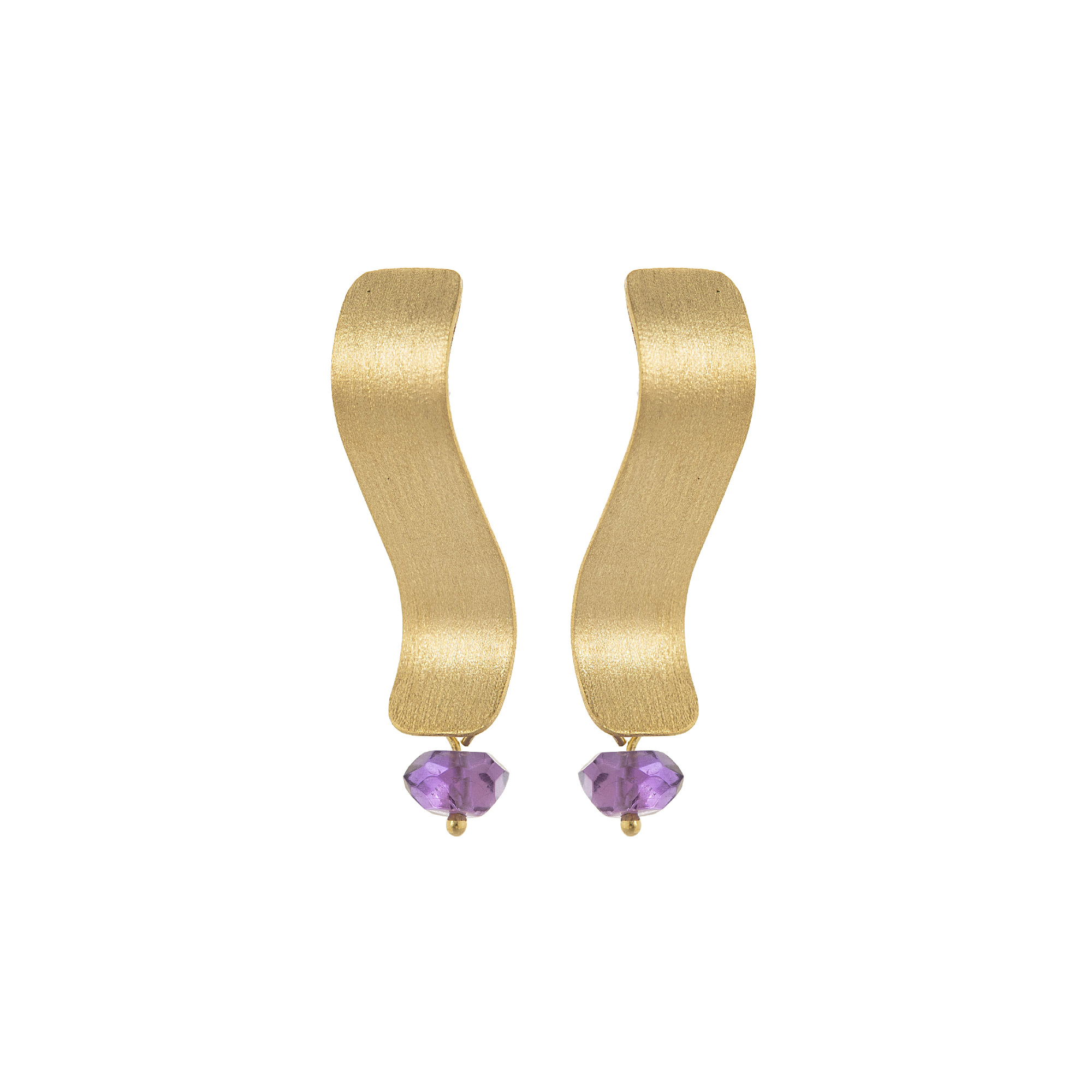Brinco de ouro amarelo com ametistas. Medida 3,3cm.
