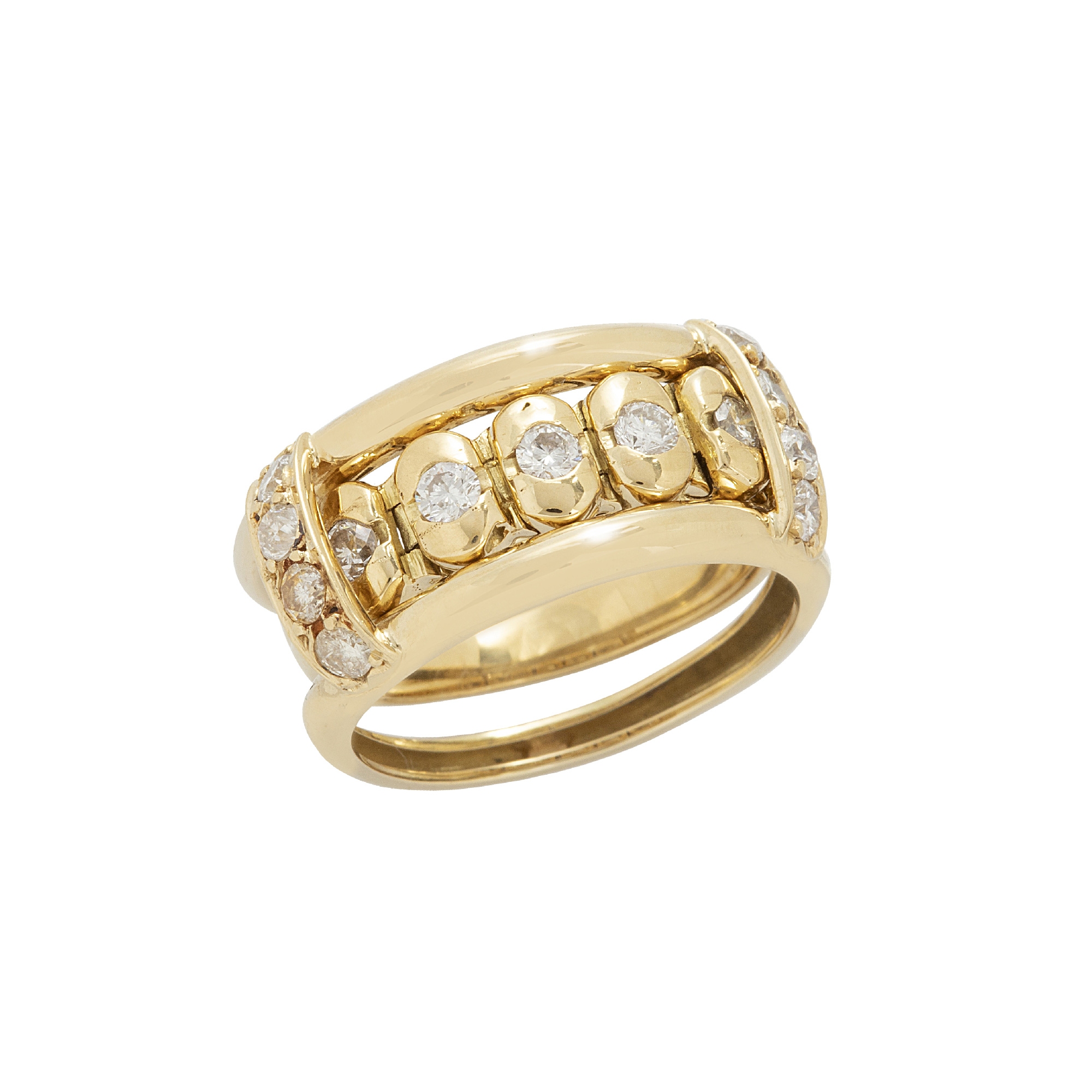 Anel de ouro amarelo com 1,00ct de brilhantes e 9,4g. Medida 14.