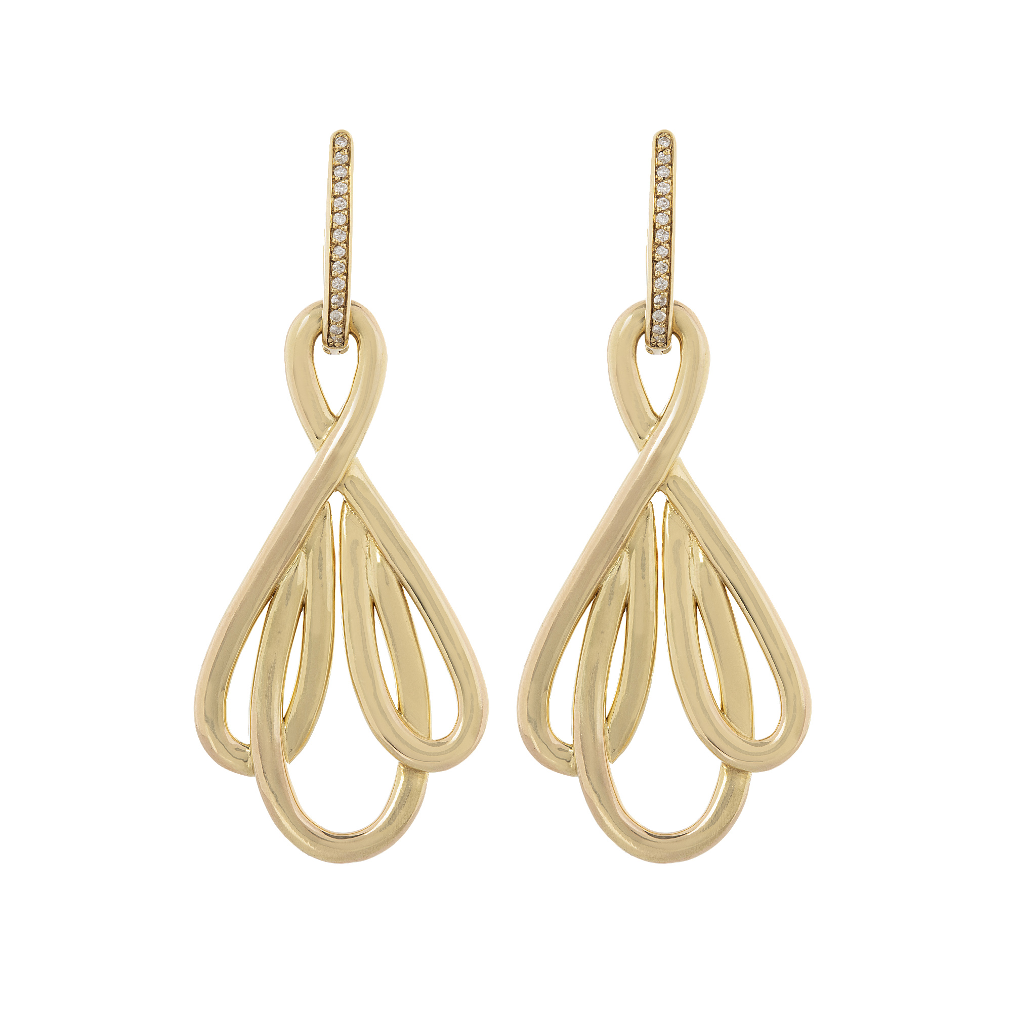 Brinco de ouro amarelo com 0,12ct de brilhantes e 10,0g. Medida 5,8cm.