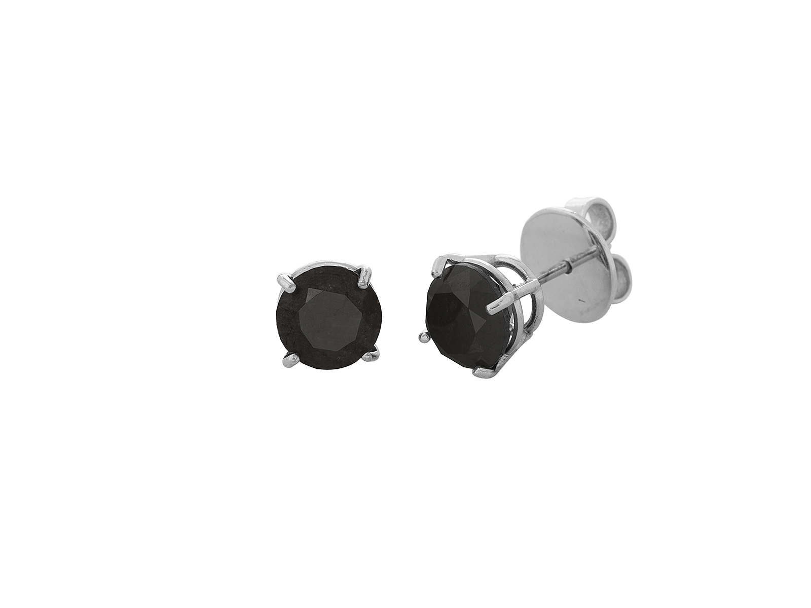 Brinco solitário de ouro branco com 3,48ct de brilhantes negros. Medida 0,7cm.
