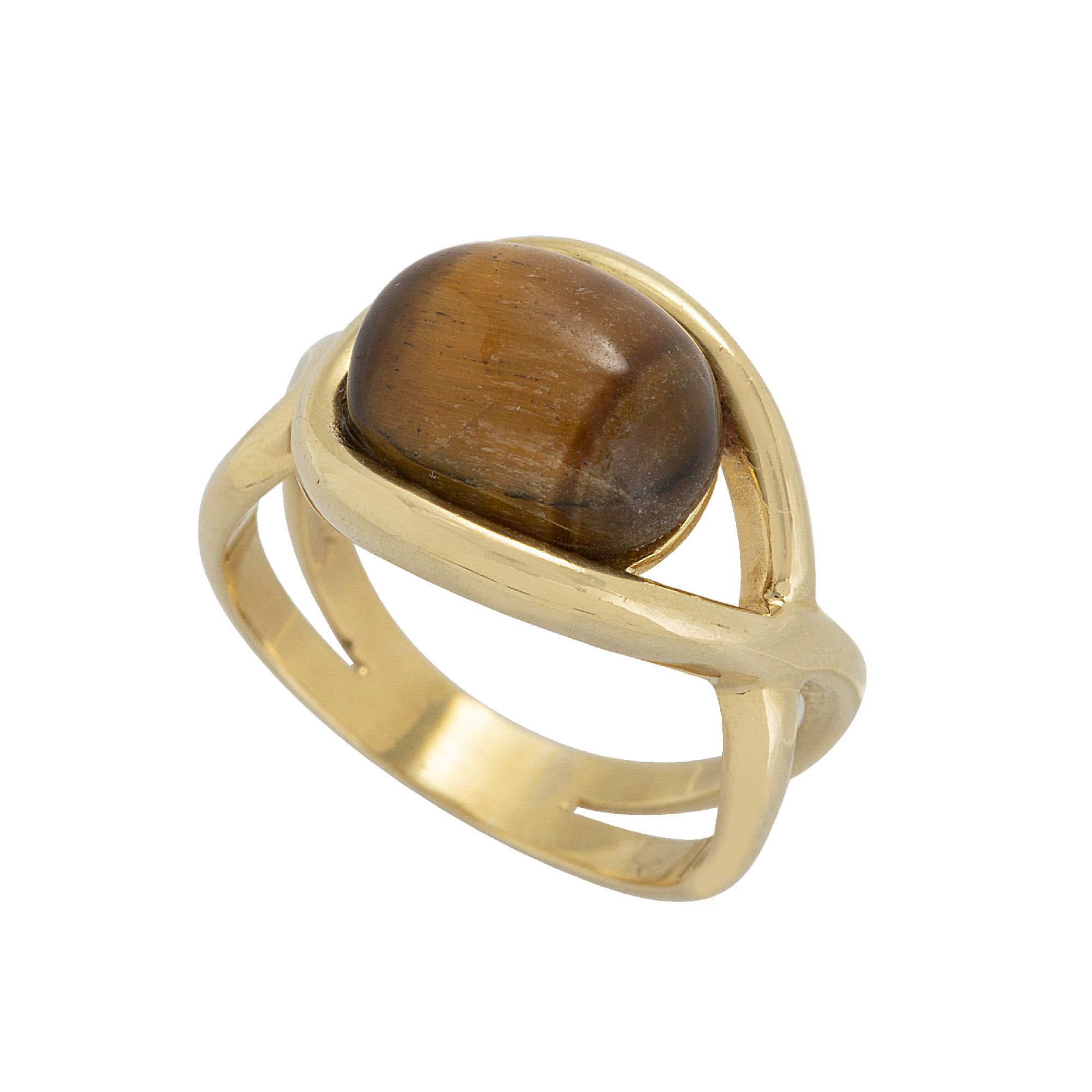 Anel de ouro amarelo com olho de tigre e 7,0g. Medida 15.