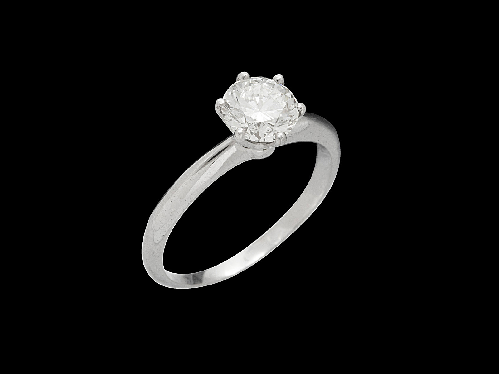 Com certificado GIA. Anel solitário de ouro branco com 1,01ct de brilhante I-VS2. Medida 16.