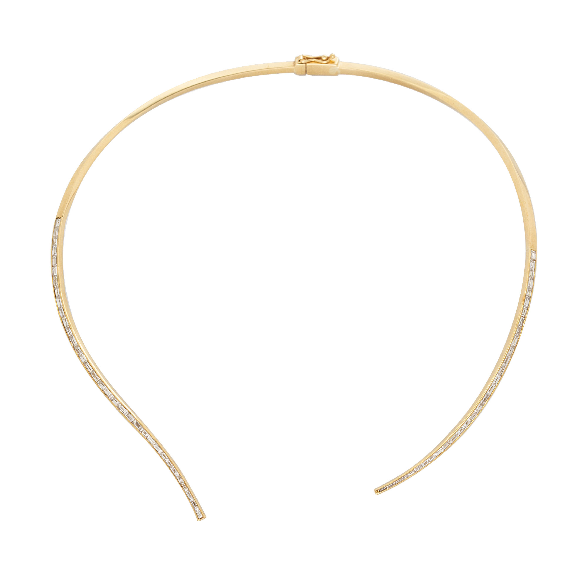Gargantilha de ouro amarelo com 2,20ct de diamantes lapidação baguete e 25,4g. Medida aproximada 37cm.