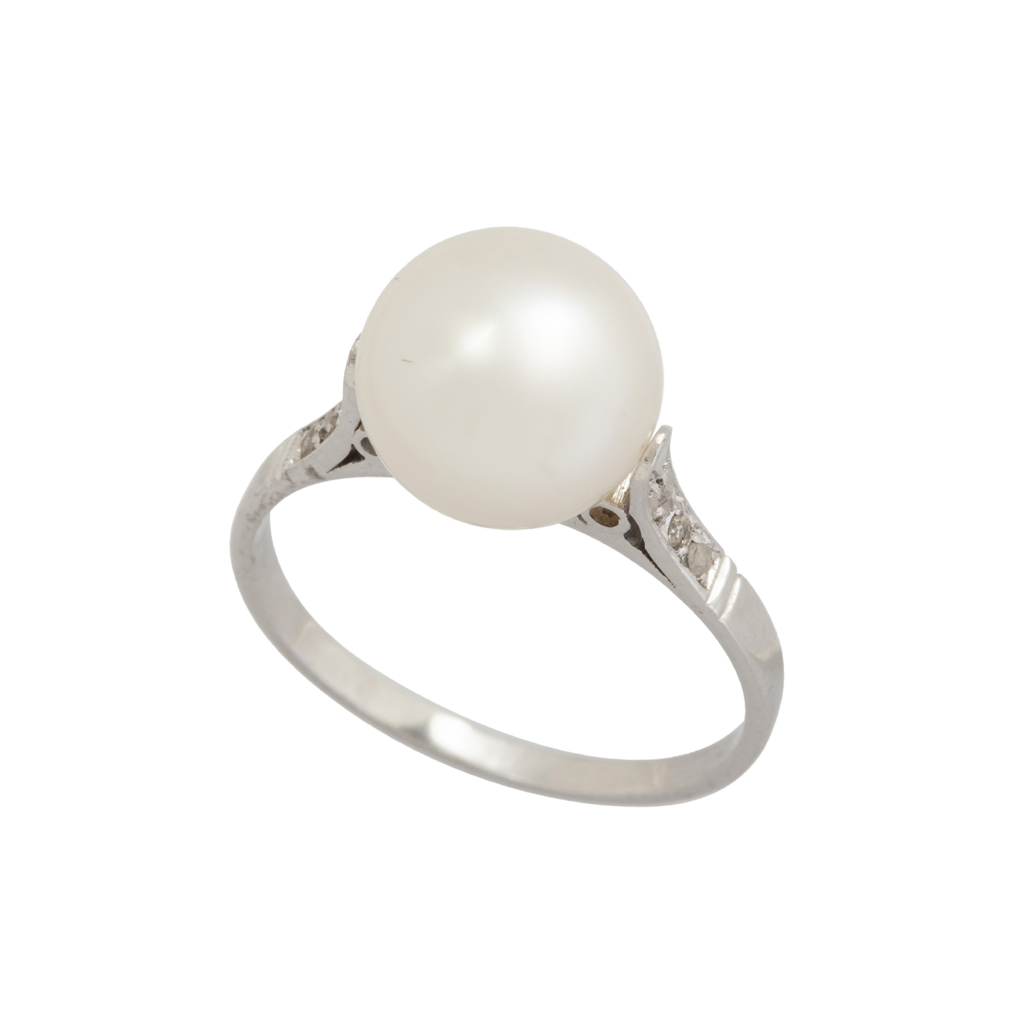 Anel de platina com pérola (9mm) e 0,02ct de brilhantes. Medida 13.