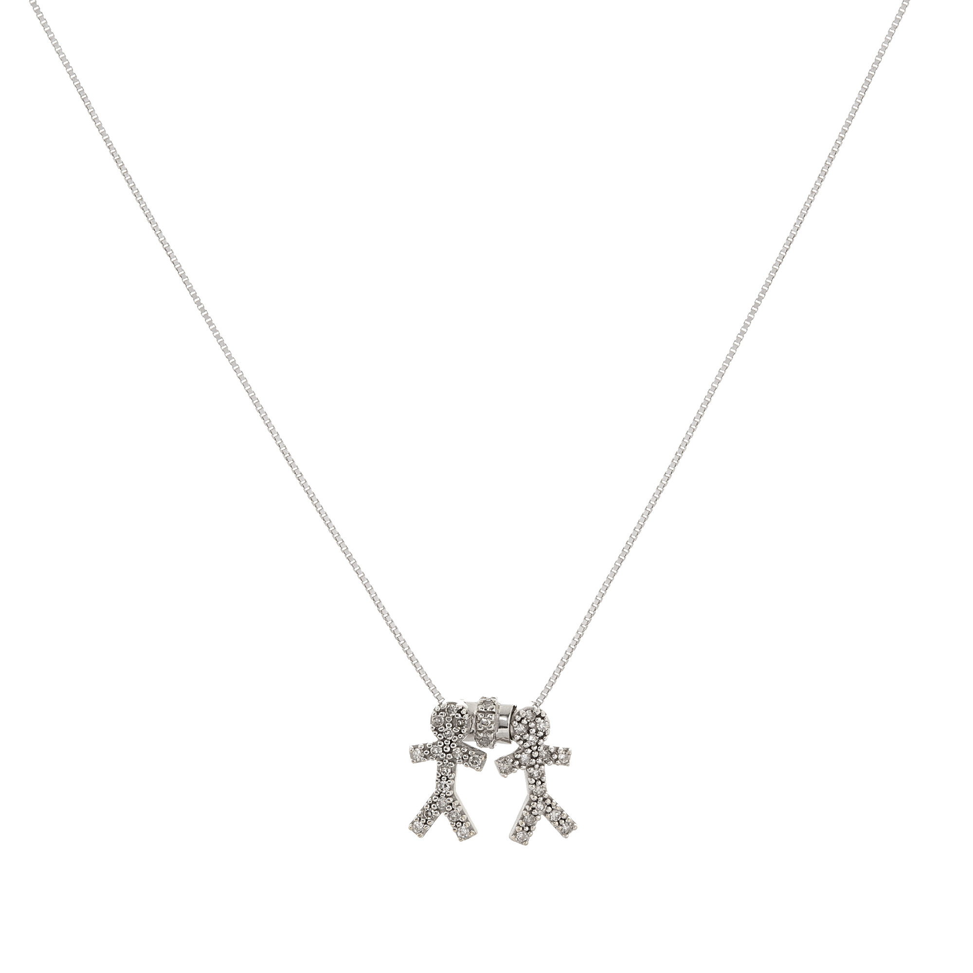 VIVARA. Corrente com pingentes de ouro branco e 0,15ct de brilhantes. Medidas 1,3cm/46cm.