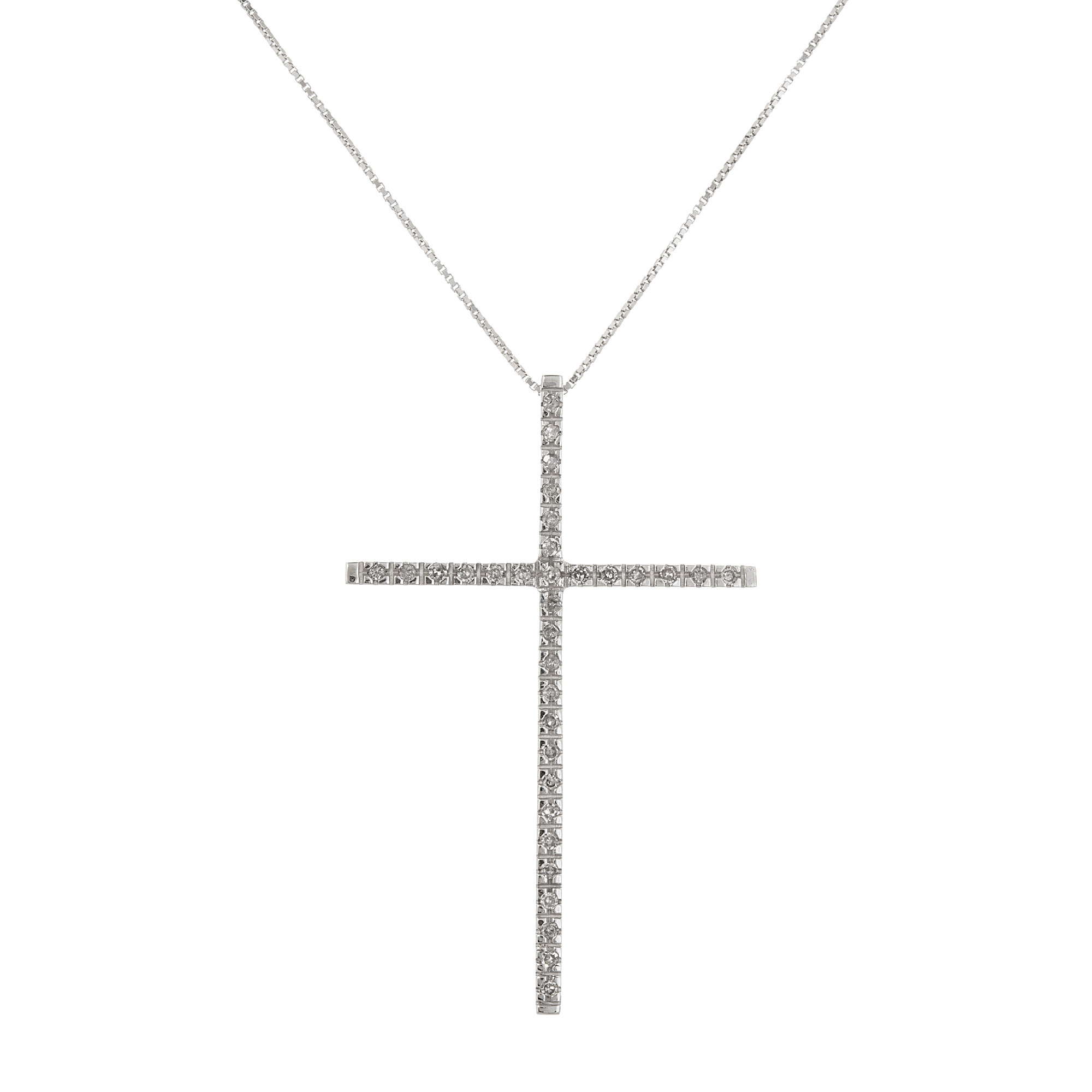 Corrente com pingente de ouro branco e 0,25ct de brilhantes. Medidas 2,5x4,2cm/45cm.