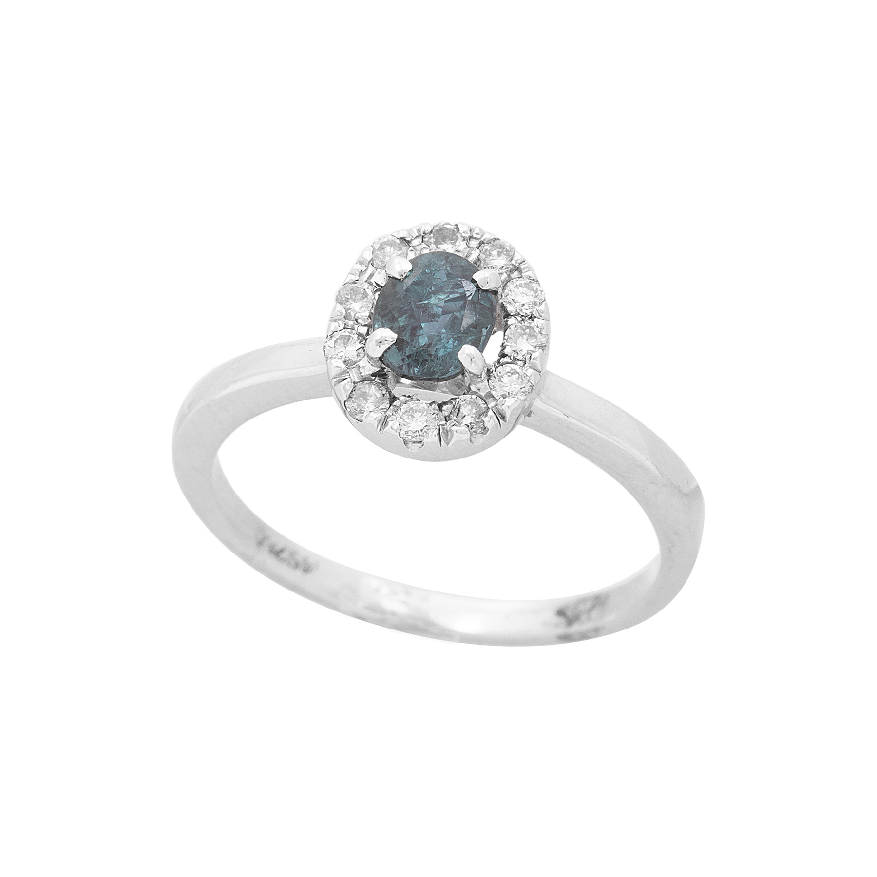 Anel de ouro branco com 0,59ct de alexandrita e 0,17ct de brilhantes. Medida 16.