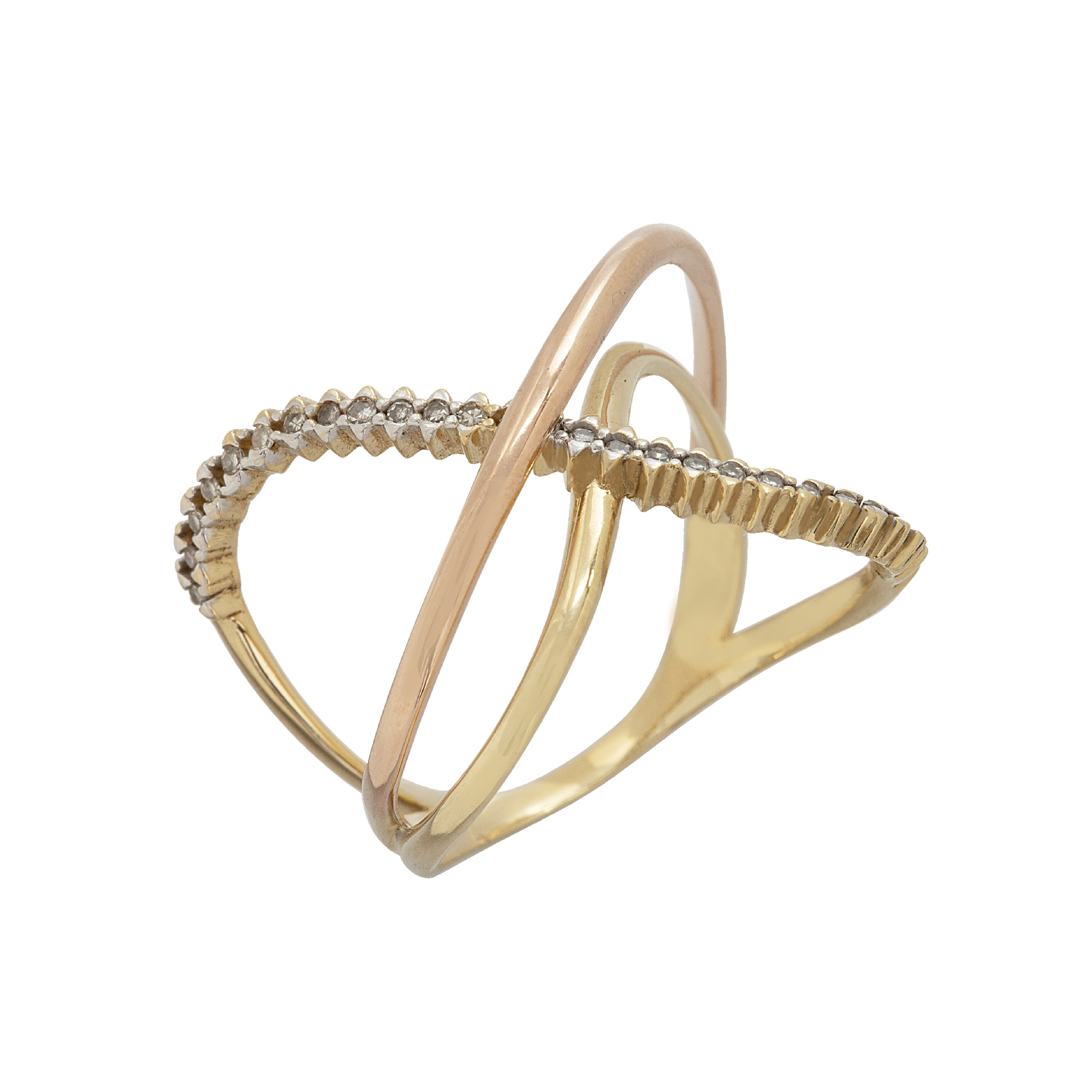 Anel de ouro amarelo e rosé com 0,10ct de brilhantes. Medida 17.
