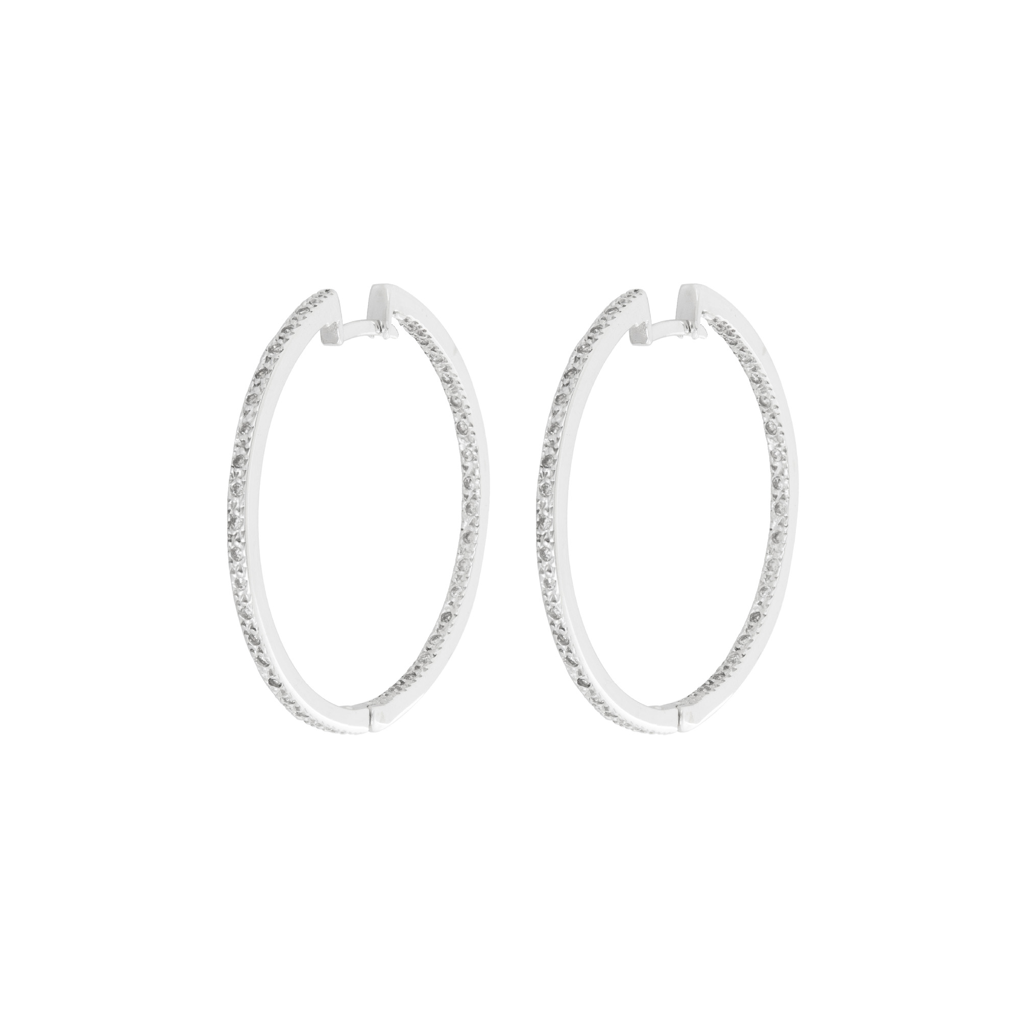 Brinco de ouro branco com 0,15ct de brilhantes e 8,0g. Medida 3,5cm.