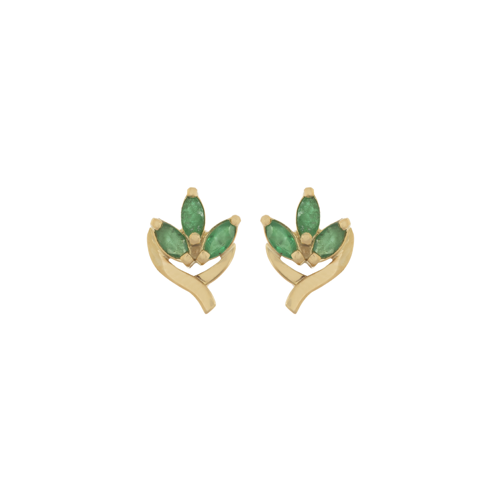 Brinco de ouro amarelo com esmeraldas. Medida 1,4cm.