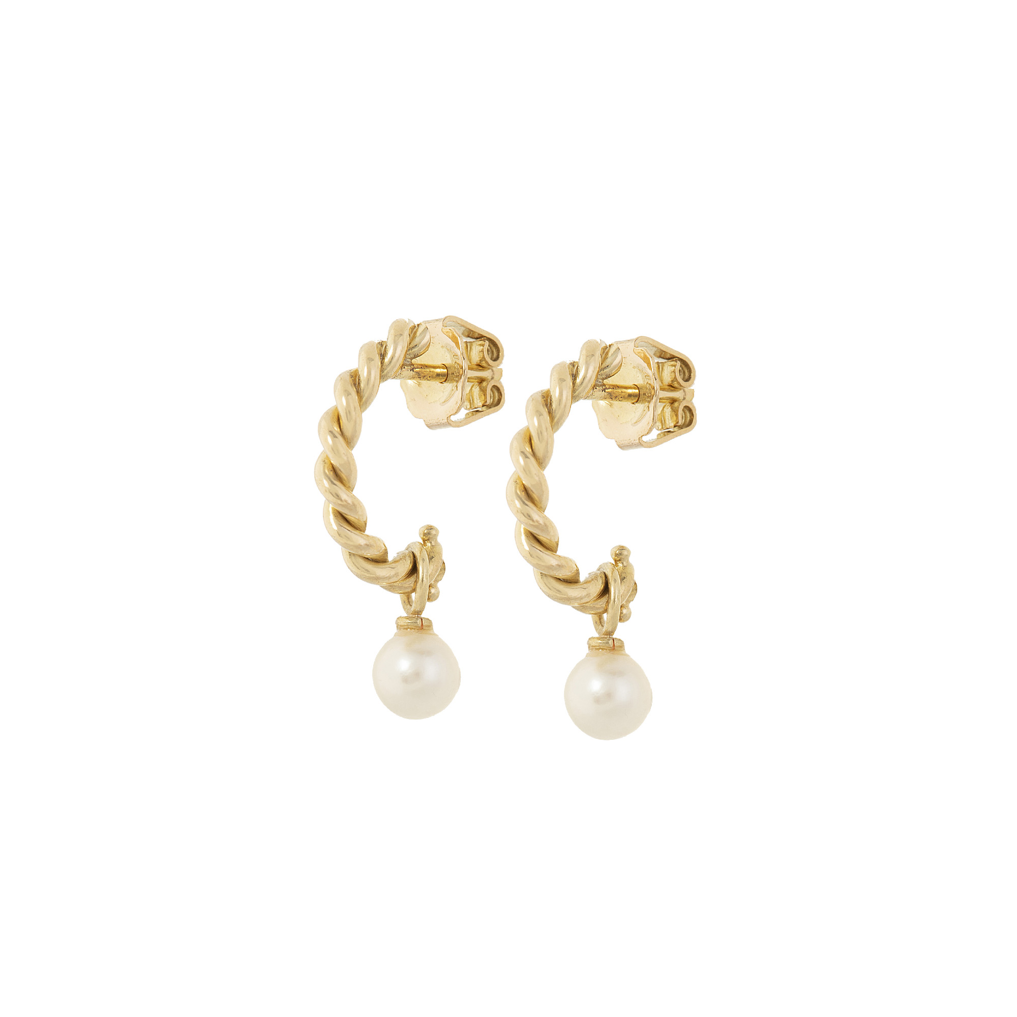 Brinco de ouro amarelo com pérolas (4,7mm). Medida 2cm.