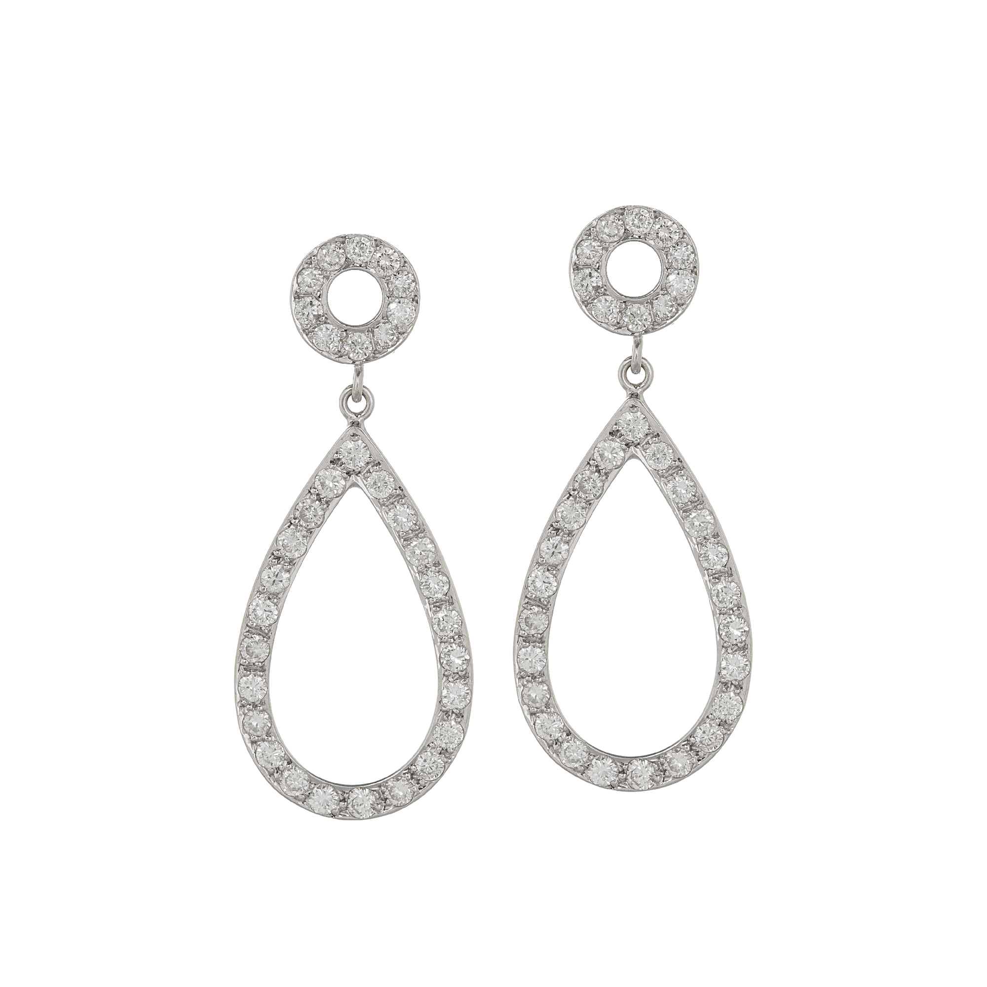Brinco de ouro branco com 2,00ct de brilhantes. Medida 3,7cm.