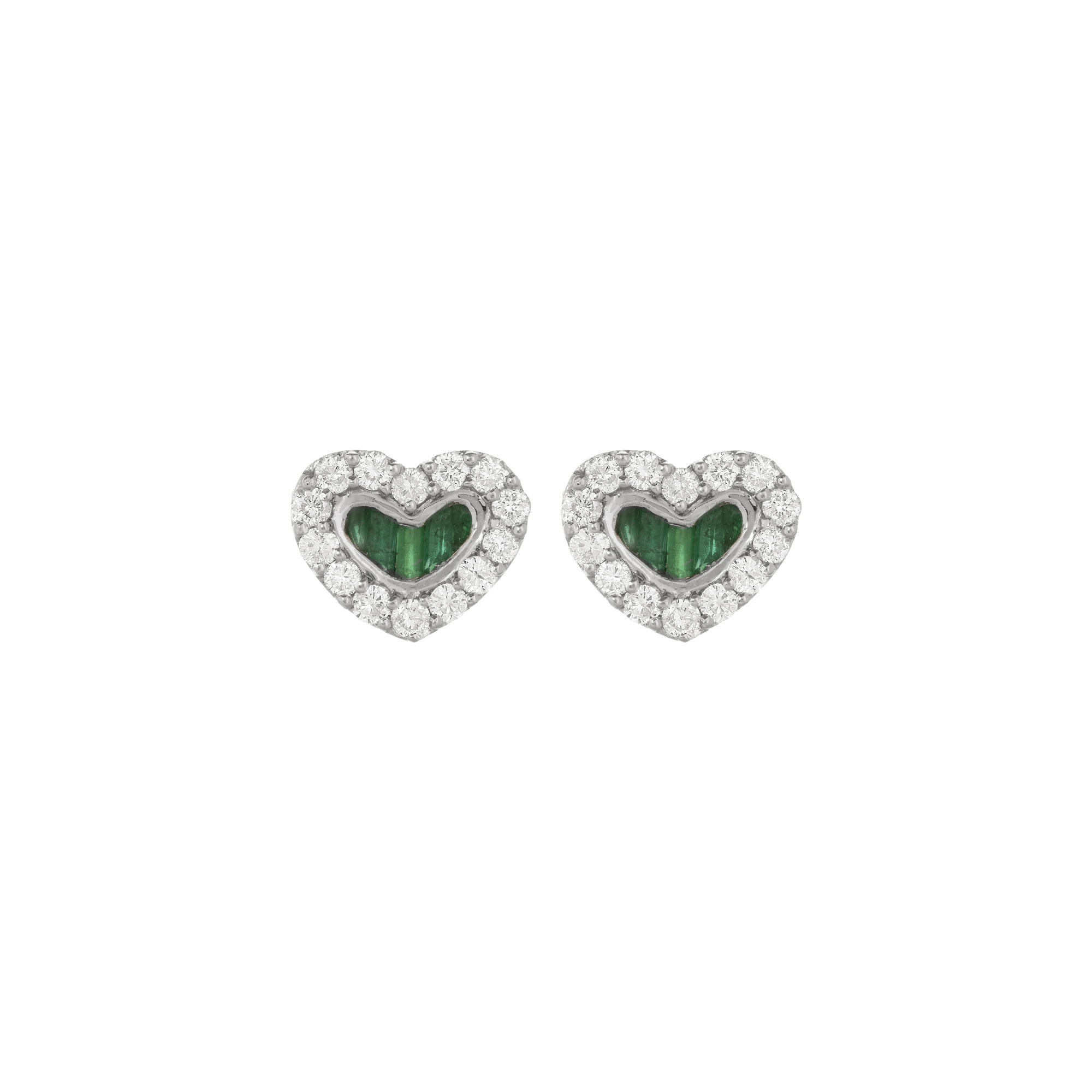 Brinco de ouro branco com esmeraldas e 1,30ct de brilhantes. Medida 1,8cm.