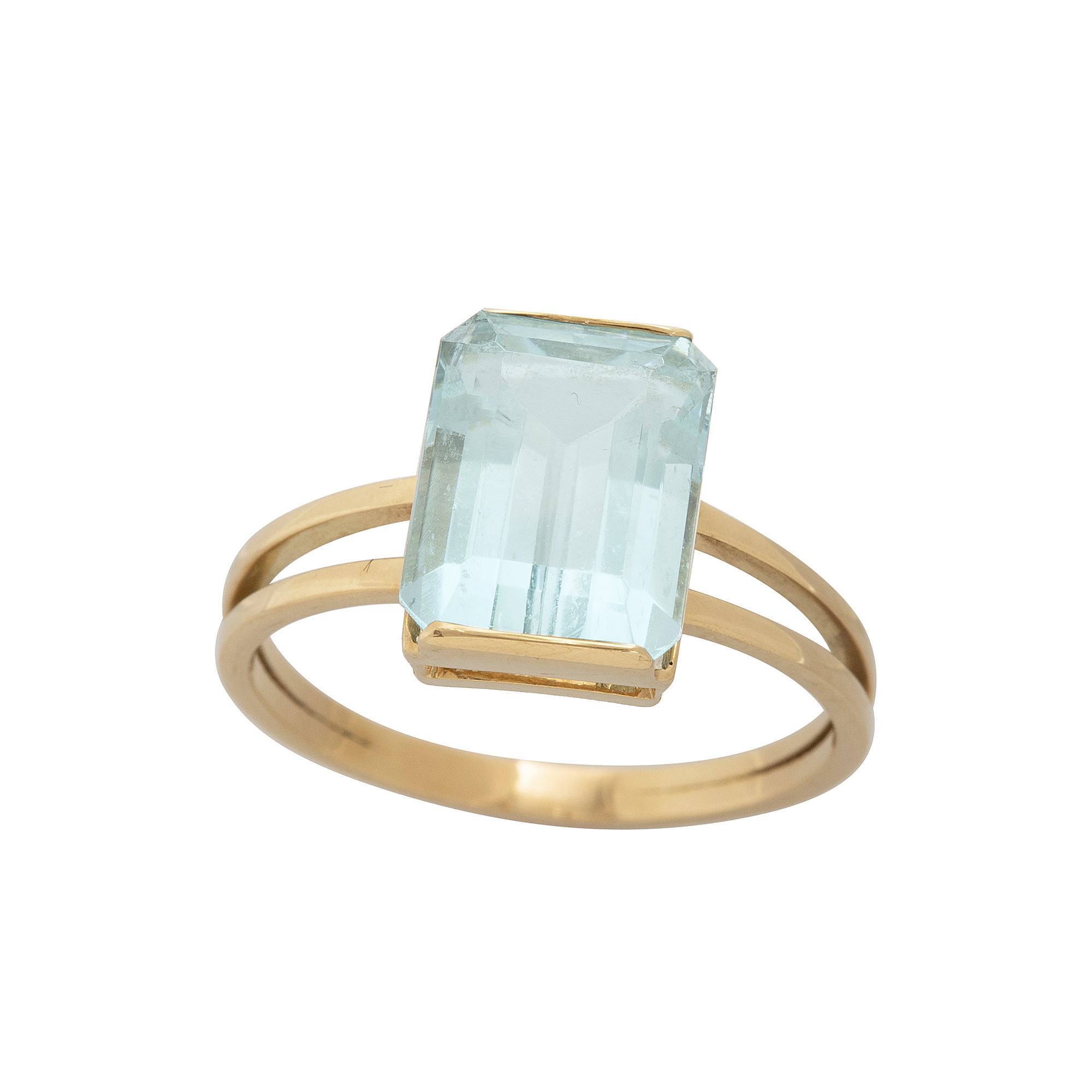 Anel de ouro amarelo com água-marinha. Medida 20.