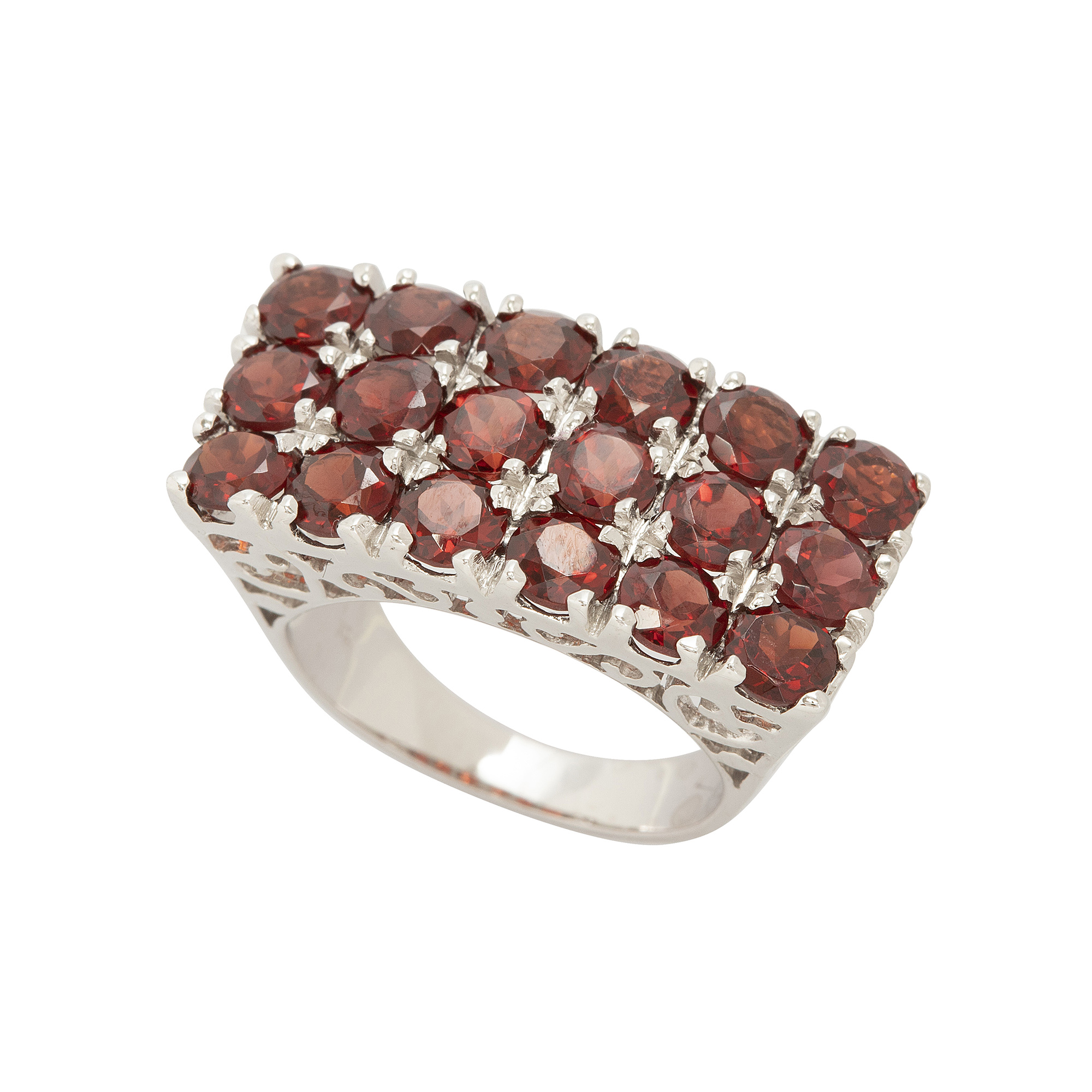 Anel de ouro branco com granadas e 7,8g. Medida 14.