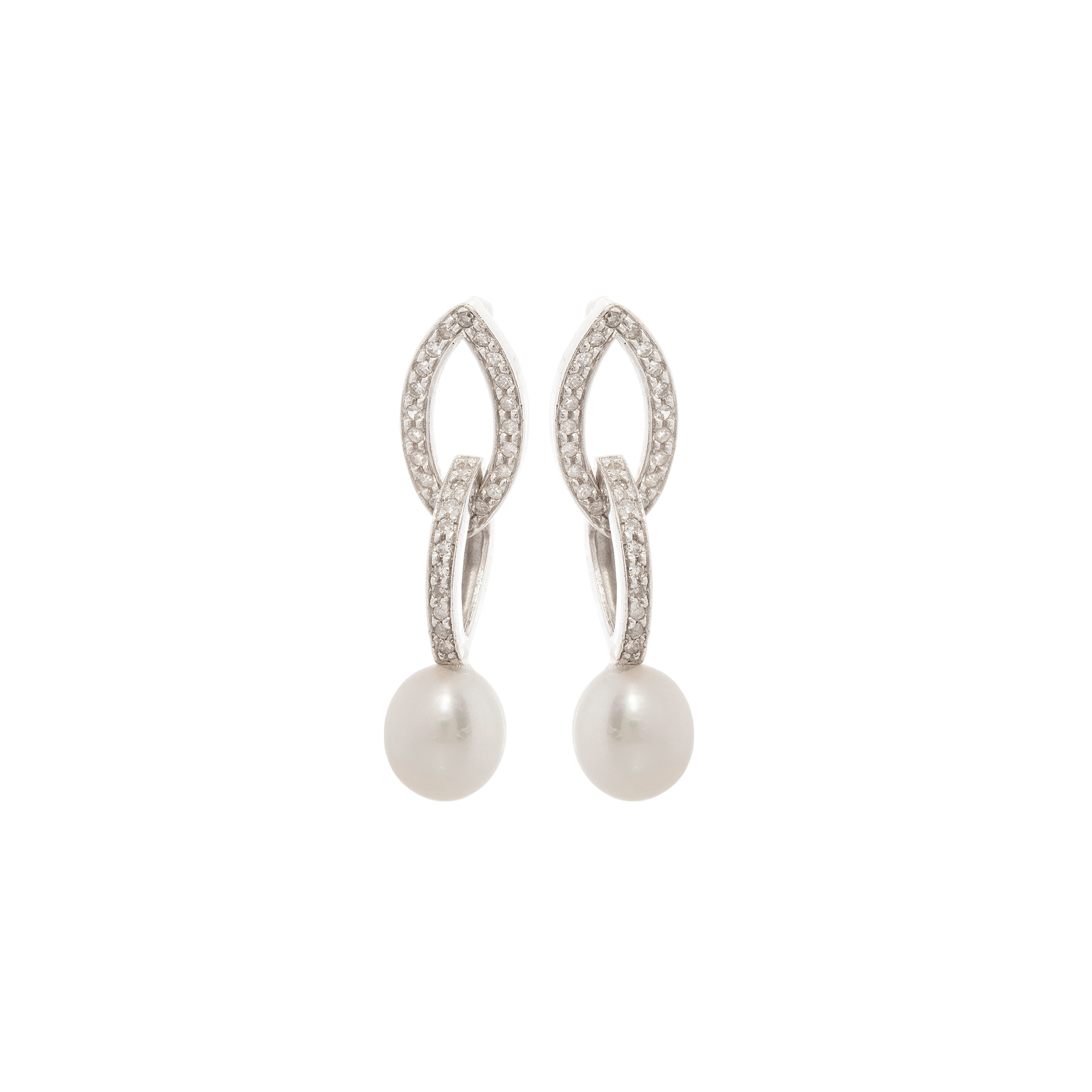 VIVARA. Brinco de ouro branco com pérolas (7mm), 0,30ct de brilhantes e 6,0g. Medida 3,2cm.