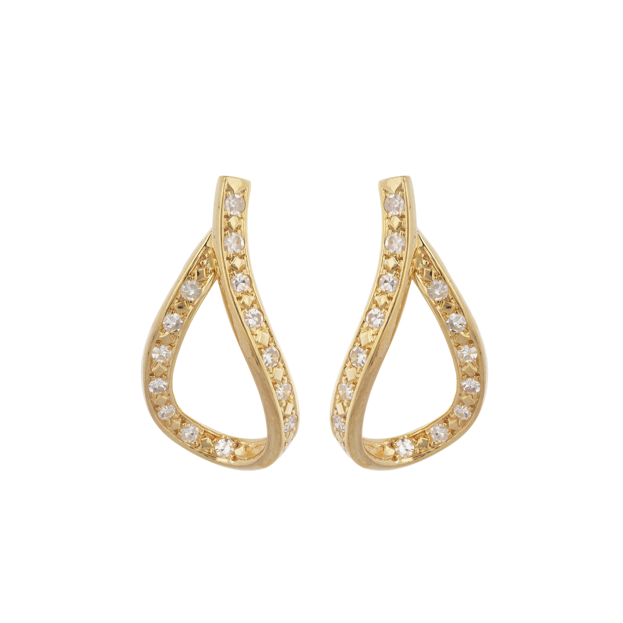 Brinco de ouro amarelo com 1,20ct de brilhantes e 11,4g. Medida 3,5cm.