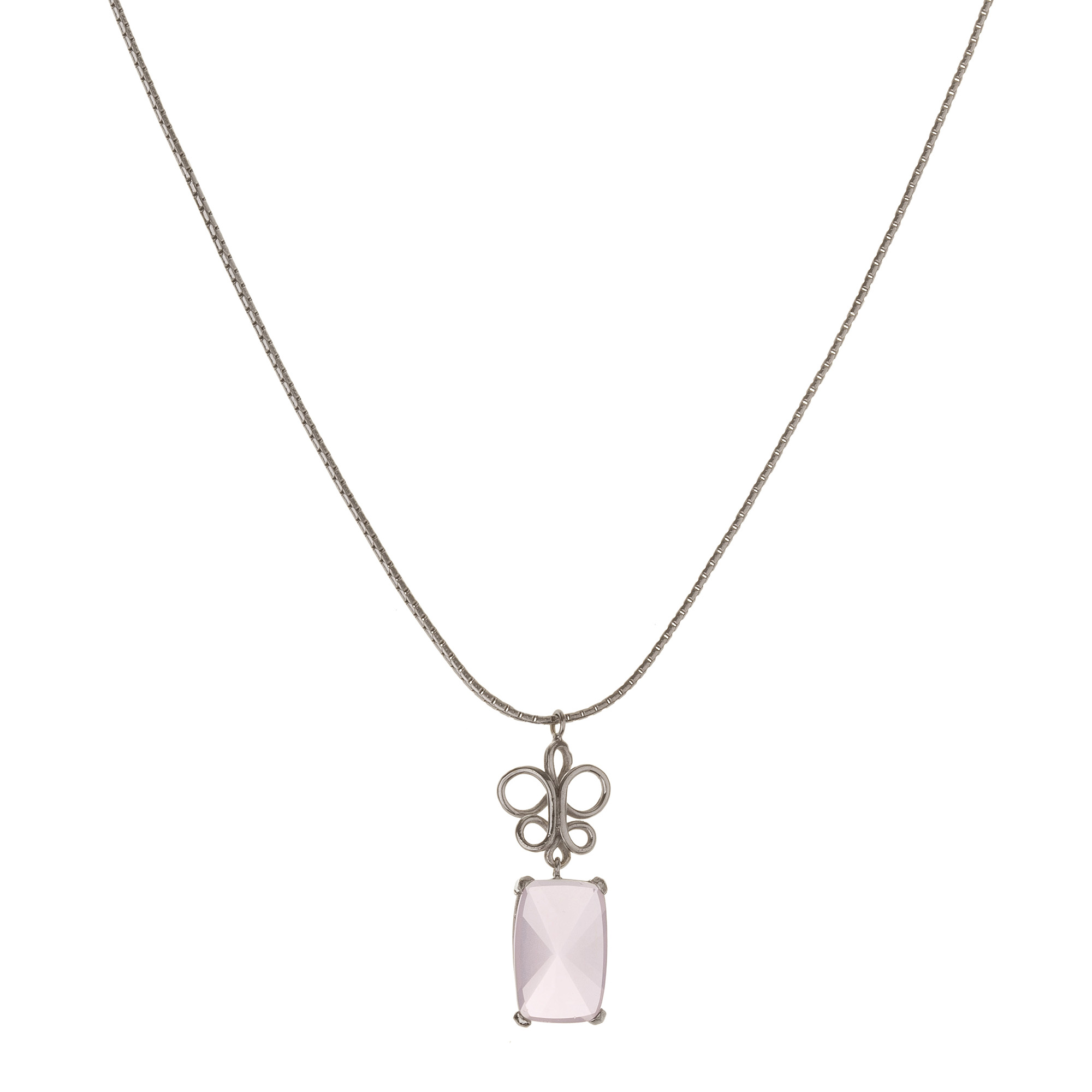 Corrente com pingente de ouro branco e quartzo rosa. Medidas 2,6cm/42cm.