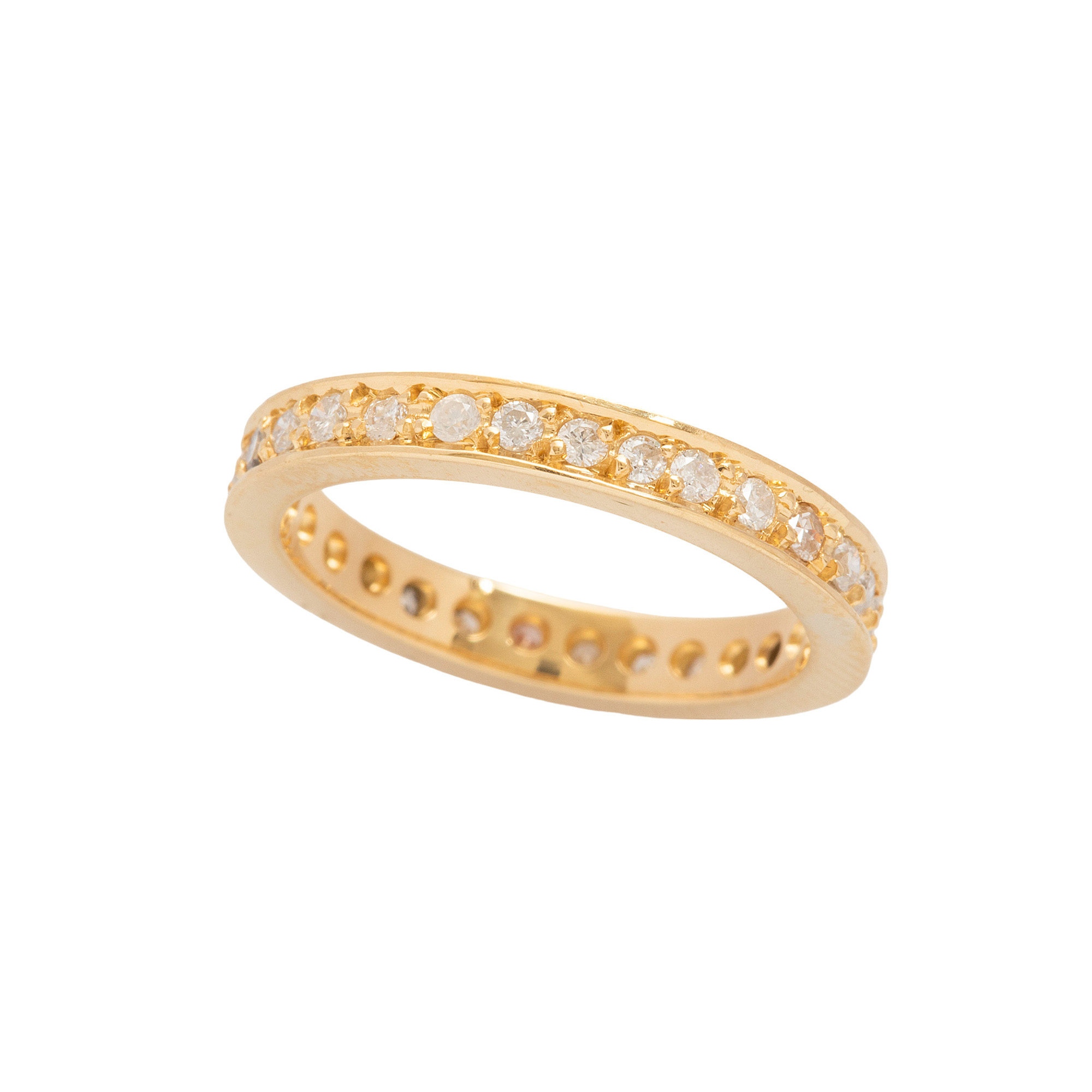 Aliança de ouro amarelo com 0,75ct de brilhantes. Medida 17.