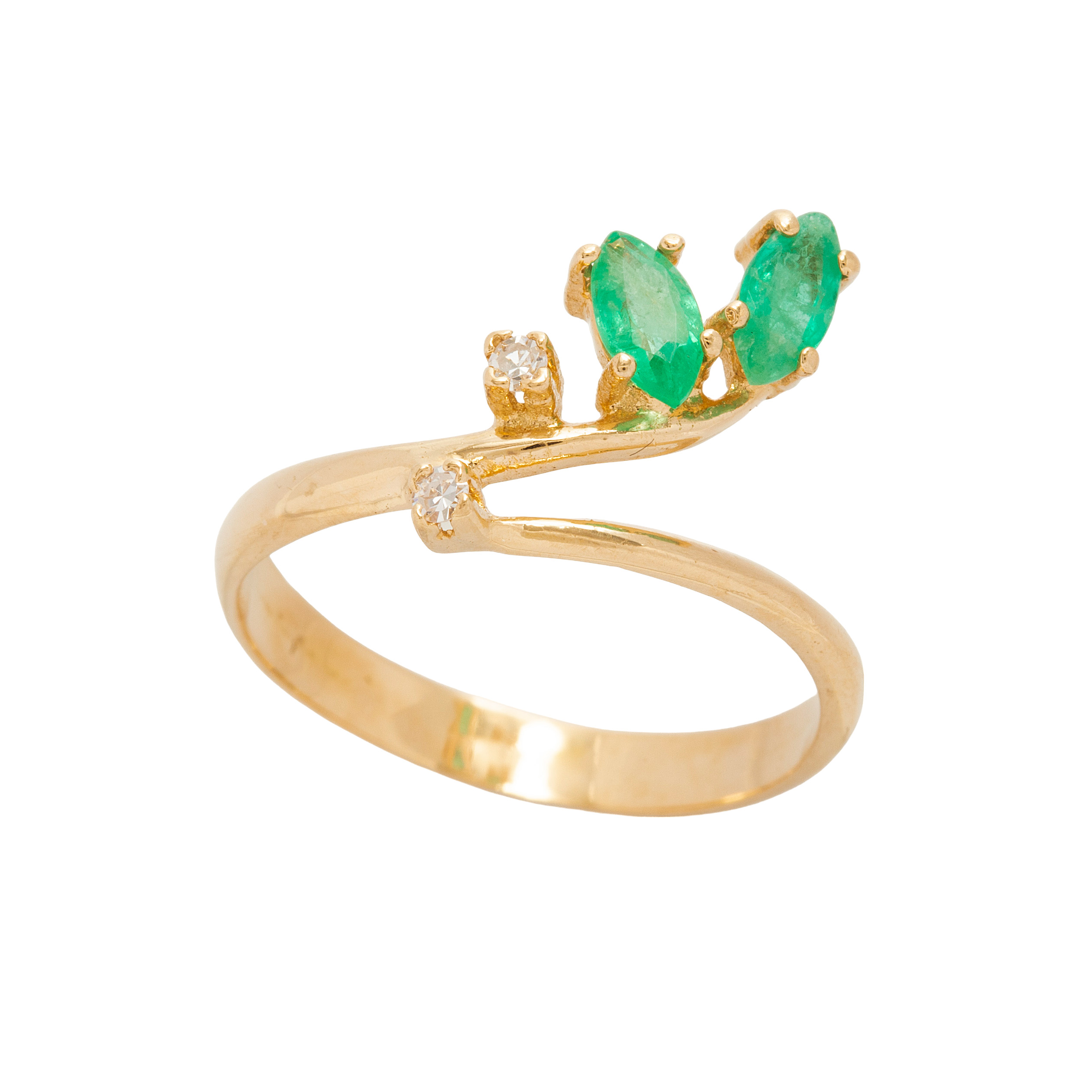 Anel de ouro amarelo com esmeraldas e 0,02ct de brilhantes. Medida 16.
