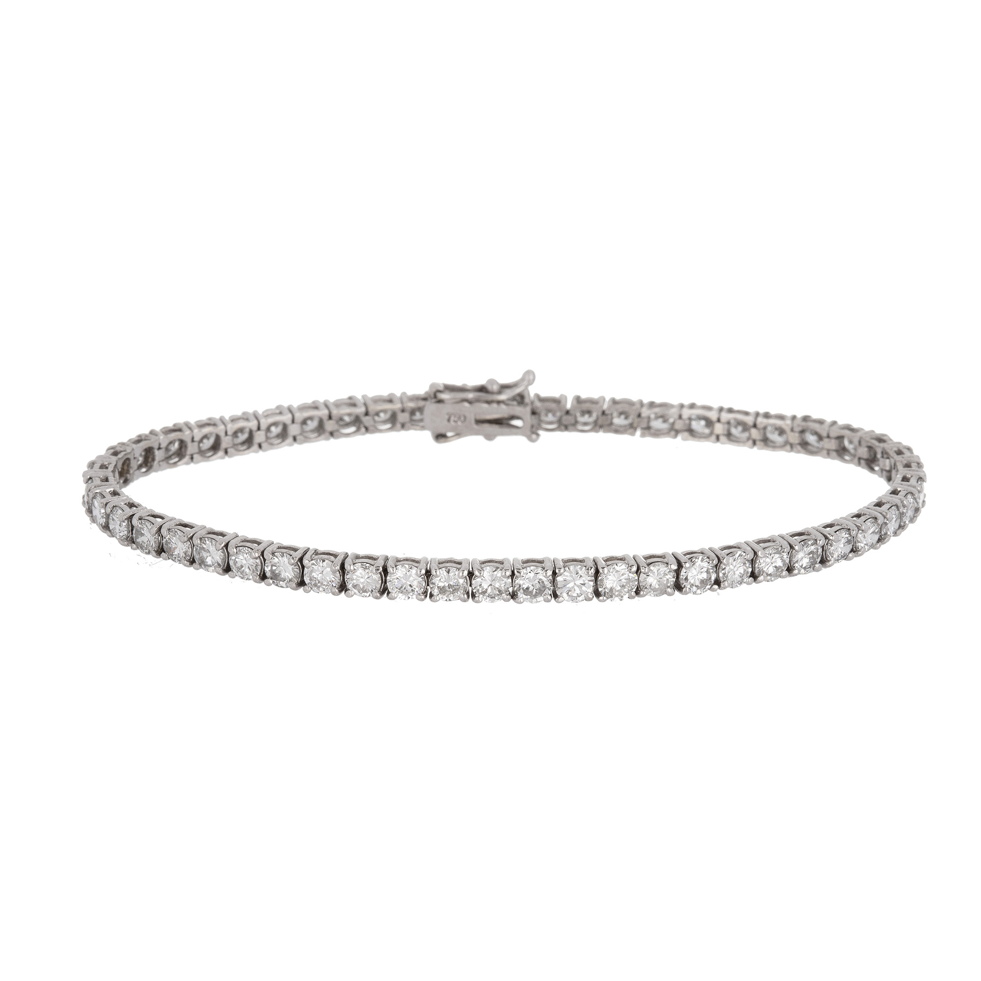 Pulseira riviera de ouro branco com 6,18ct de brilhantes G/VS e 10,6g. Medida 18cm.