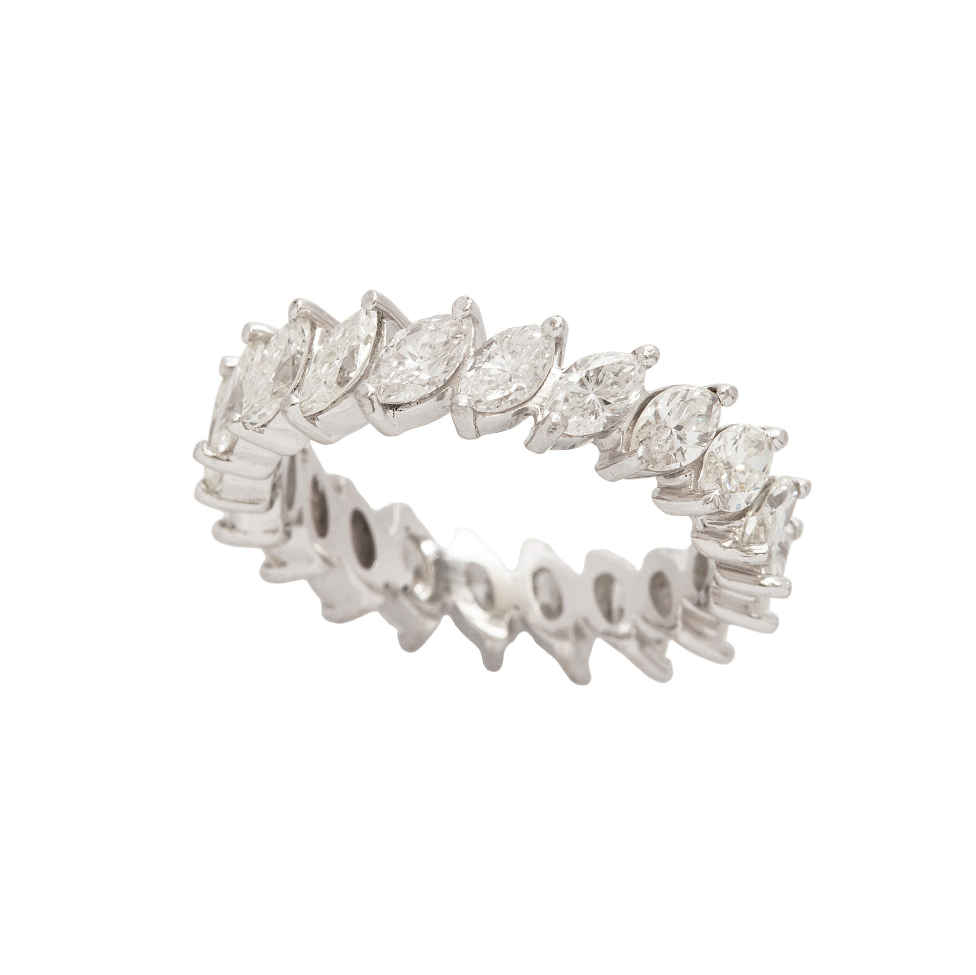Aliança de ouro branco com 3,00ct de diamantes lapidação navete I/VS. Medida 13.