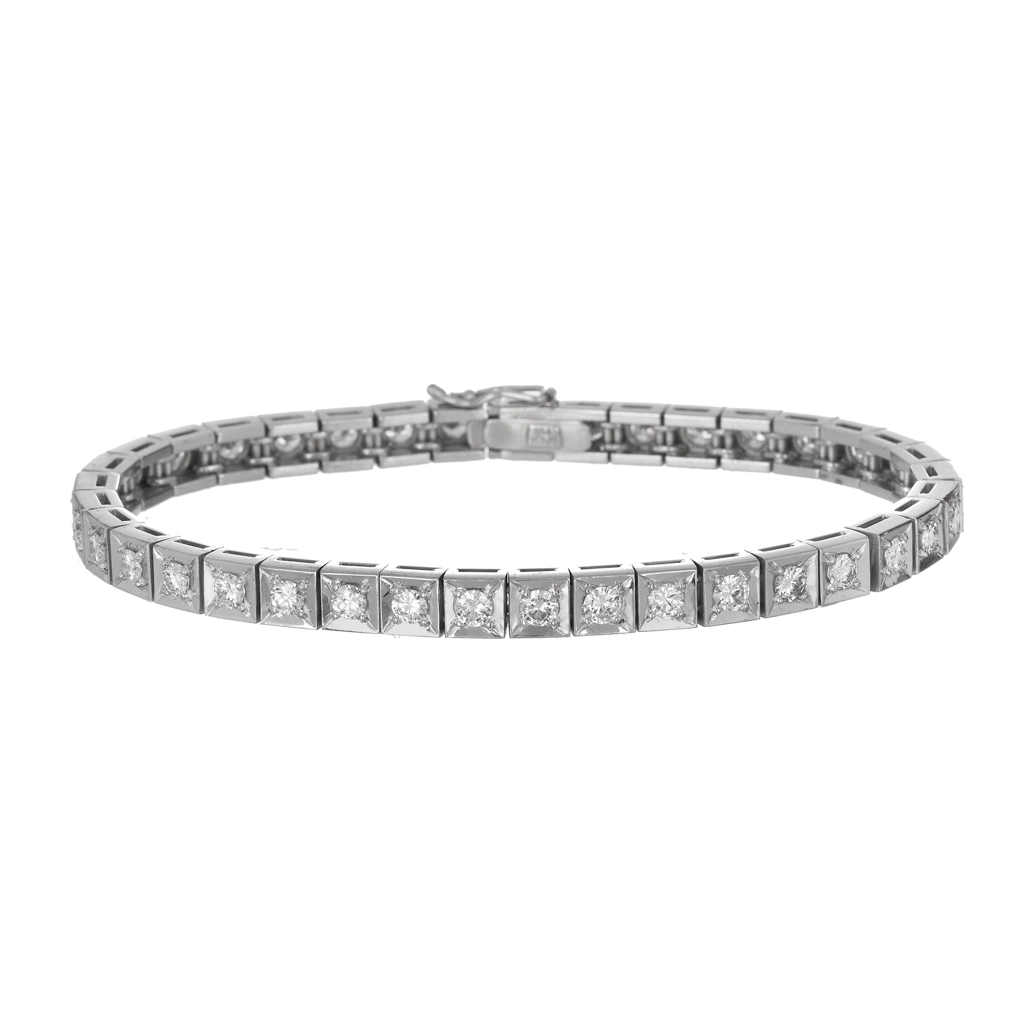 Pulseira de ouro branco com 2,96ct de brilhantes e 28,2g. Medida 18cm.