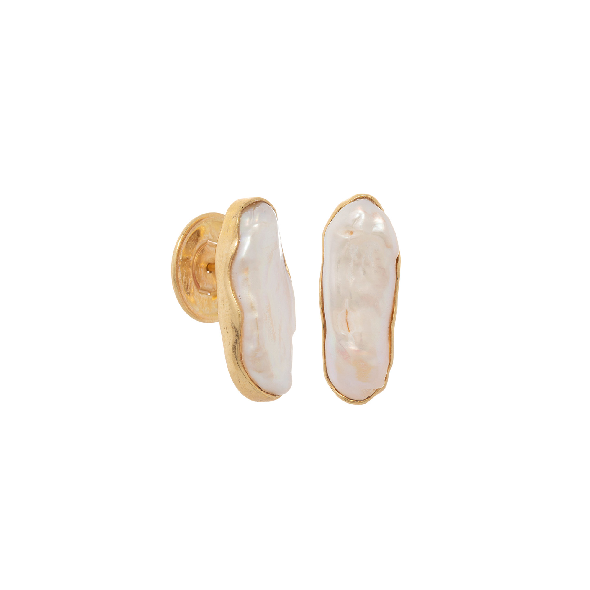 Brinco de ouro amarelo com pérolas barrocas e 7,8g. Medida 2,3cm.