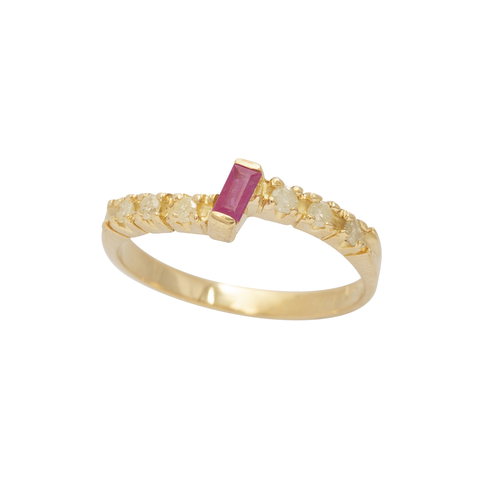 Anel de ouro amarelo com rubi e 0,06ct de brilhantes. Medida 17.